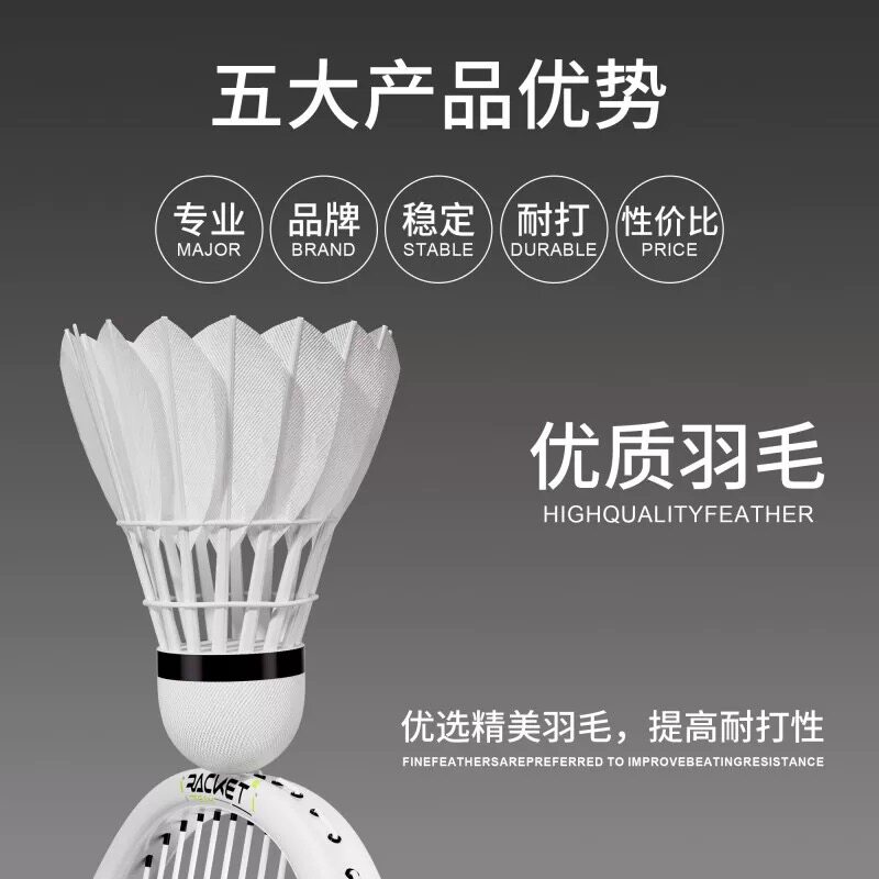 羽毛球鹅毛12支装耐打抗风羽毛球比赛训练专用稳定室外学习训练球