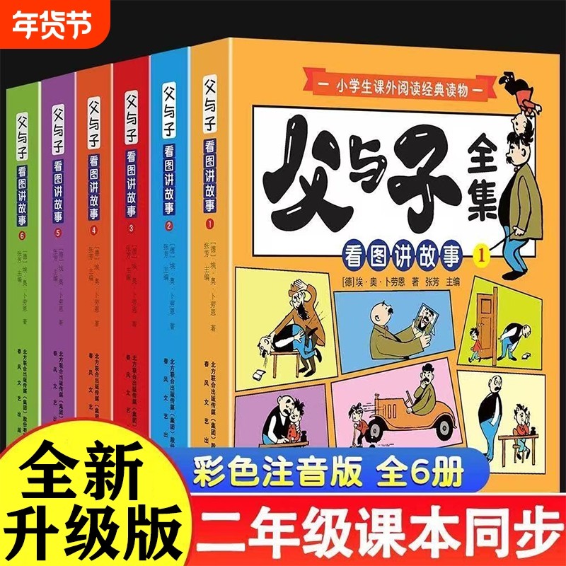 2025父与子全集六册彩色注音版一二年级上下册课外书必读正版儿童绘本漫画书适合小学生课外阅读书籍三年级经典读物拼音讲故事看图