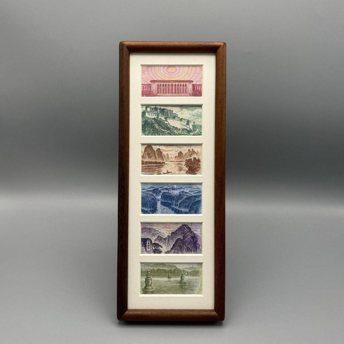 六连框黑胡桃相框增运多金画框摆台人民币装饰画简约轻奢立式摆台