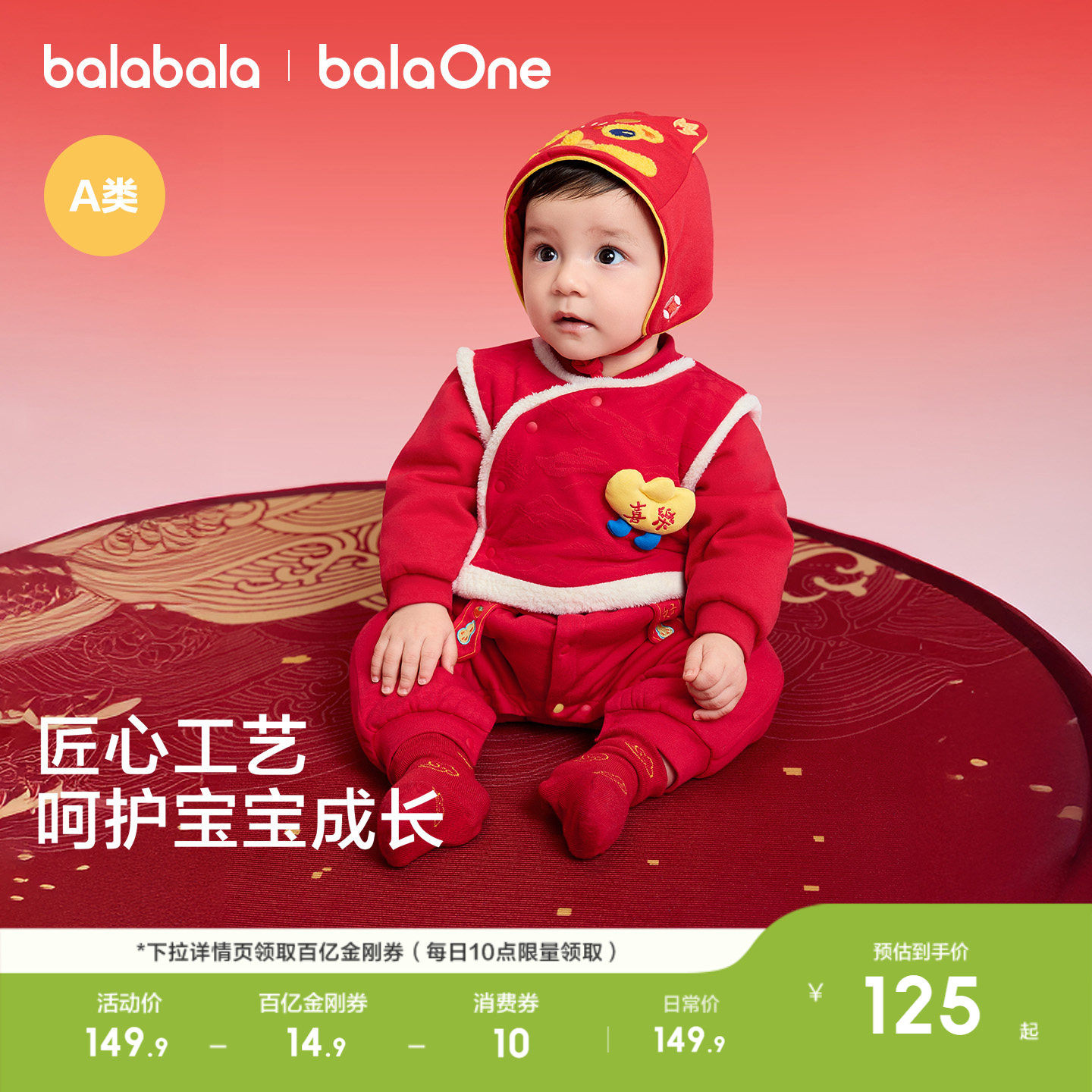 巴拉巴拉童装宝宝连体衣哈衣爬服新生婴儿衣服2026新款红色国风