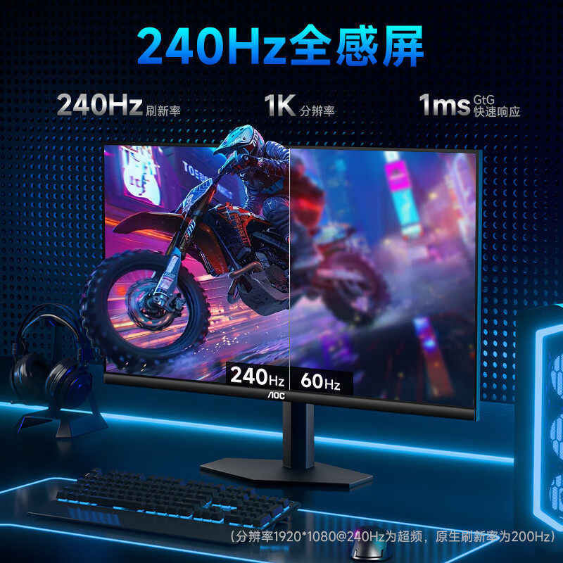 AOC 24英寸240Hz高刷电竞游戏显示器IPS快速液晶显示屏2K高清27寸