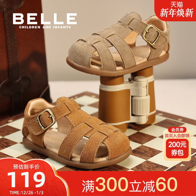 百丽婴童鞋男女宝宝学步凉鞋儿童1-3岁包头罗马女宝勃肯凉鞋防滑