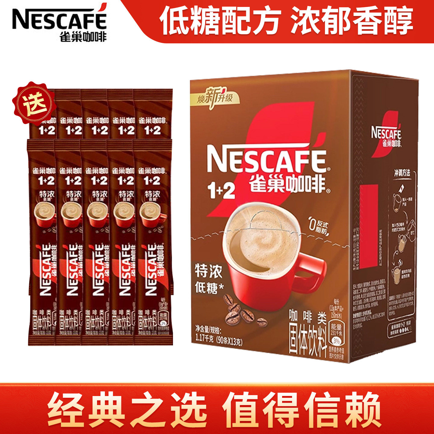 雀巢咖啡1+2原味低糖特浓奶香三合一咖啡粉速溶咖啡学生熬夜袋装