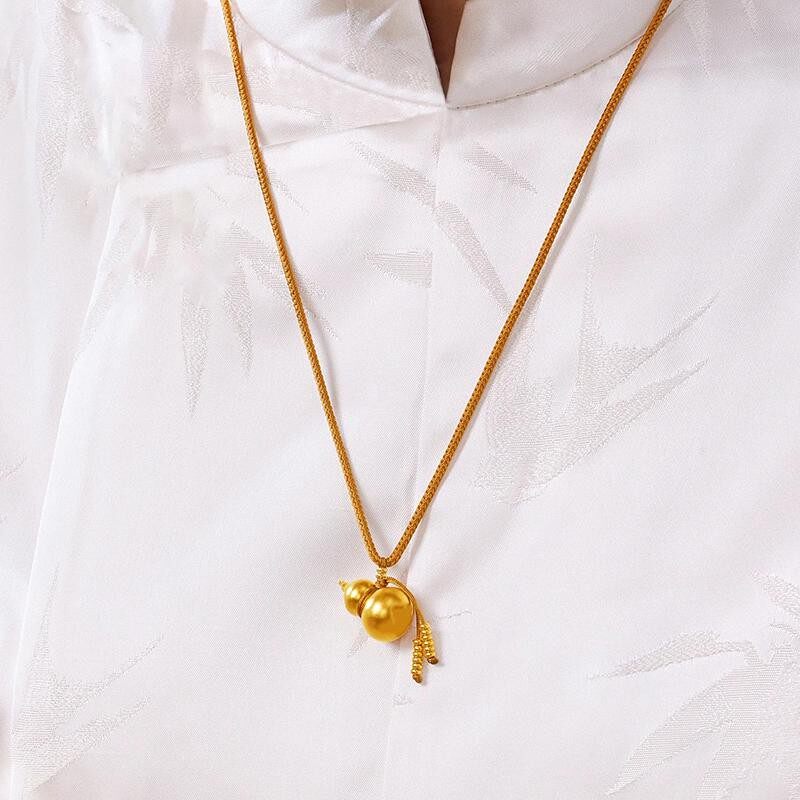 越南沙金葫芦吊坠女款黄金色福禄挂坠仿真葫芦项链挂坠毛衣链礼物