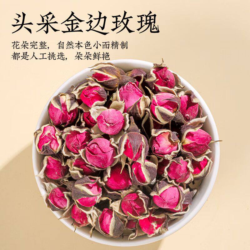 玫瑰花中药材特级云南金边玫瑰花干冠蕾大朵重瓣瓣厚泡茶茯苓无硫