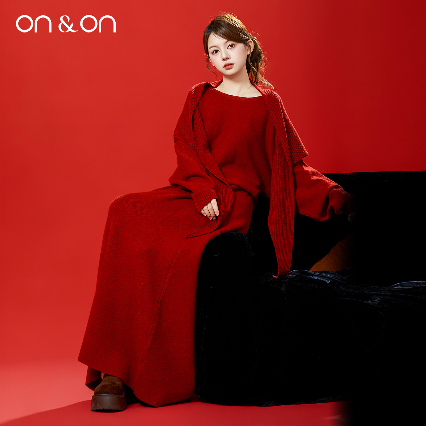 ON&ON/安乃安2025冬季新款韩系贵感时尚气质简约针织套装三件套