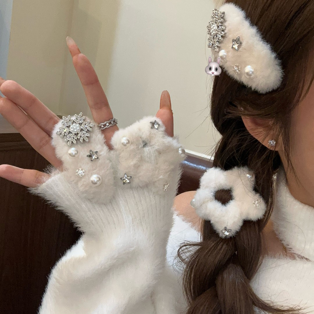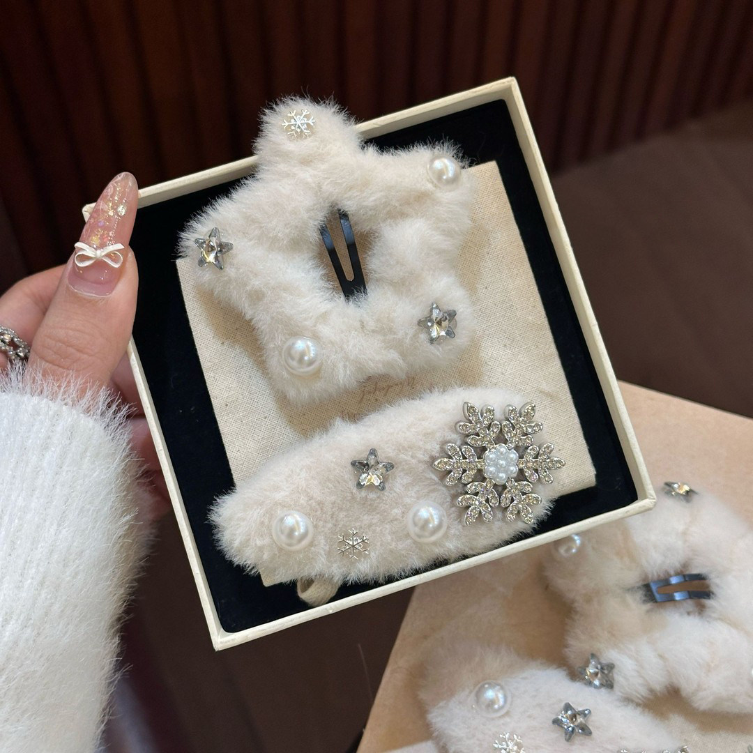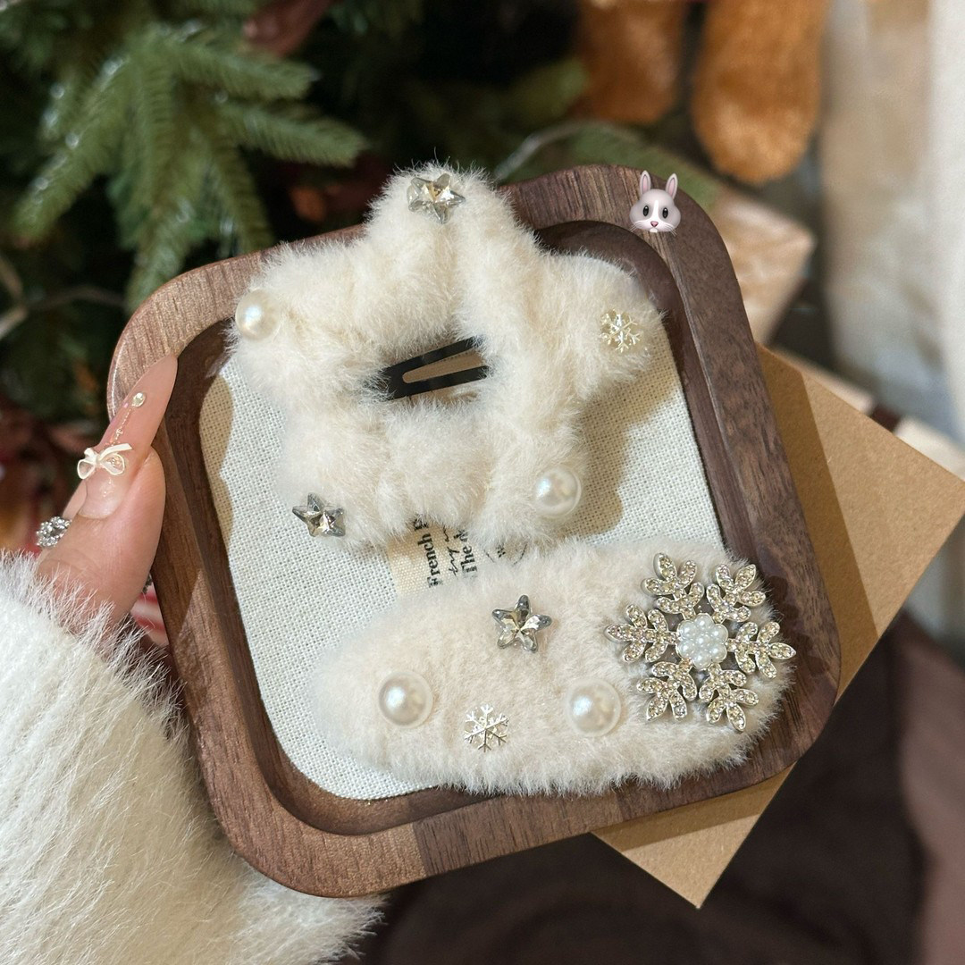秋冬毛绒雪花星星发夹女刘海侧边夹子可爱韩系圣诞节日氛围感发卡