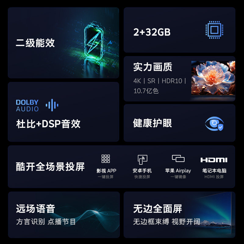 创维酷开32/43/55/65寸超高清4K智能网络投屏语音护眼酷开电视机0