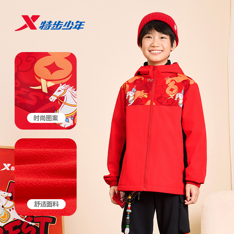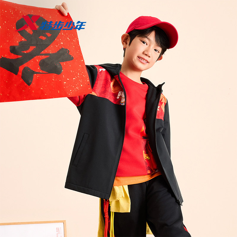 福燈贺岁|特步童装冬季儿童新年款男女童中大童运动防风保暖风衣