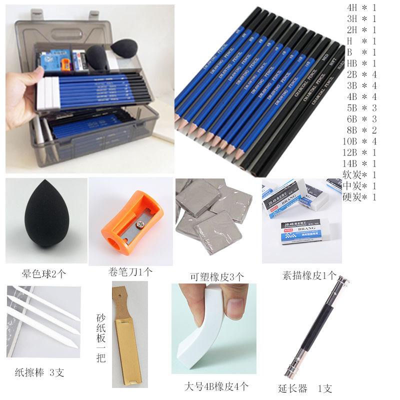 素描套装工具学生素描铅笔10B14B炭笔入门2B生铅笔基础美术初学者