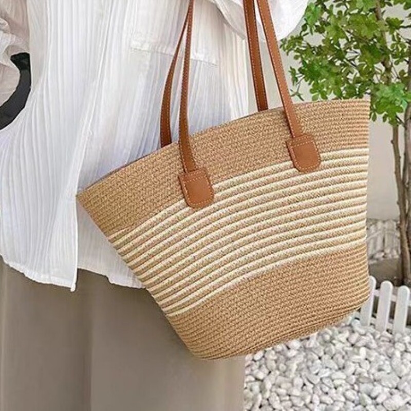 草编包女夏季手提包海边托特包大容量编织单肩包藤编草包水桶包潮