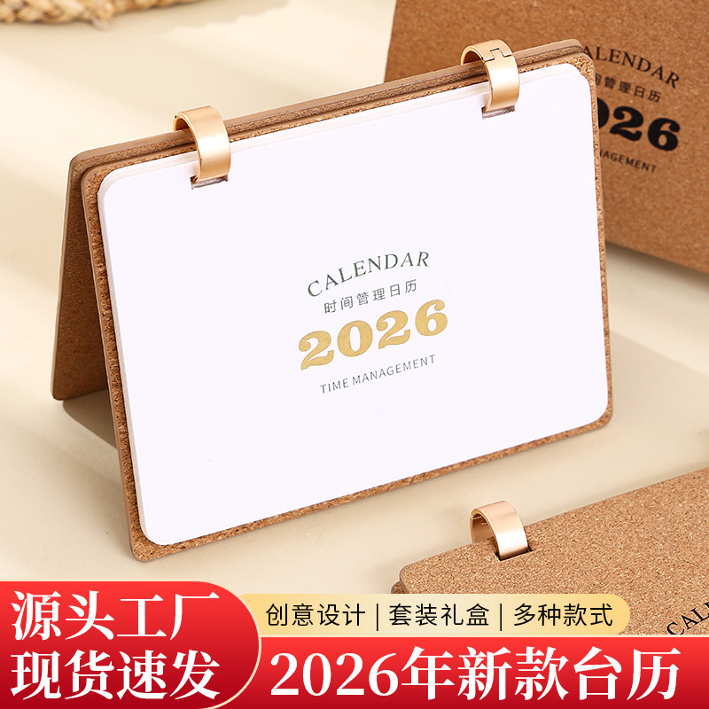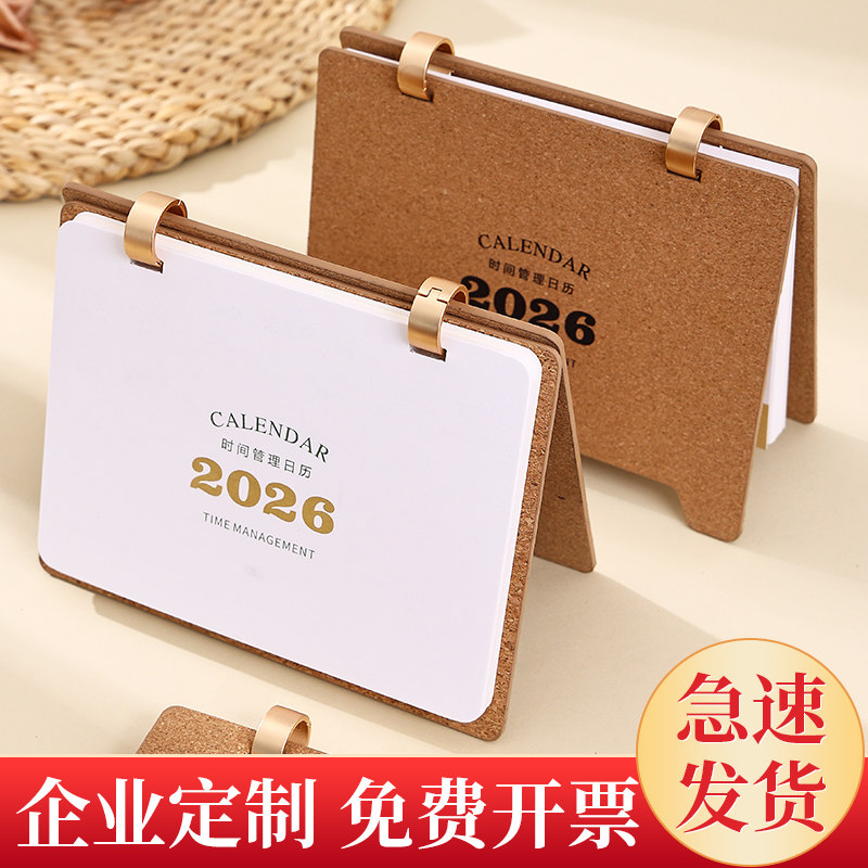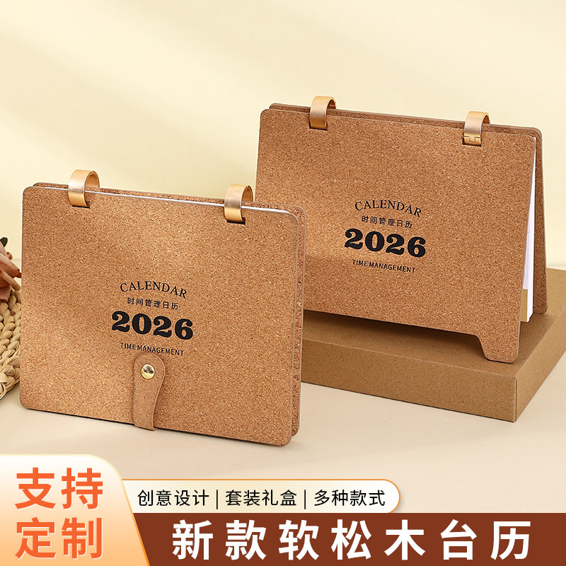 2026年新款软木木制台历可定制公司logo商标日历月历年历