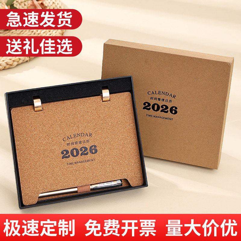2026年台历礼盒装创意简约办公月历定制笔筒木质桌面摆件马年打卡日历计划本记事历新年礼品物流保险银行台历