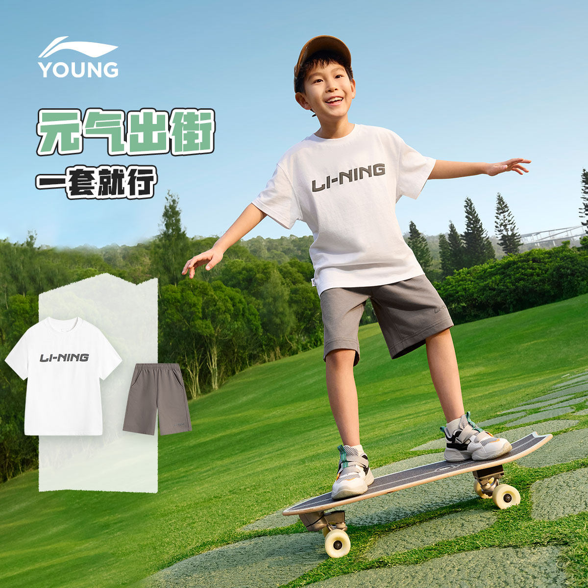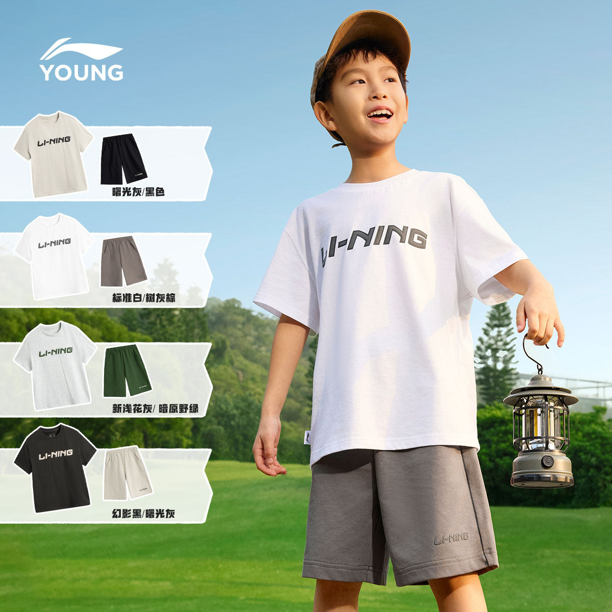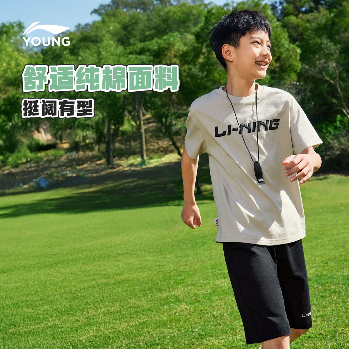 李宁童装套装男小大童新款运动生活系列套装宽松上衣裤子夏季童装