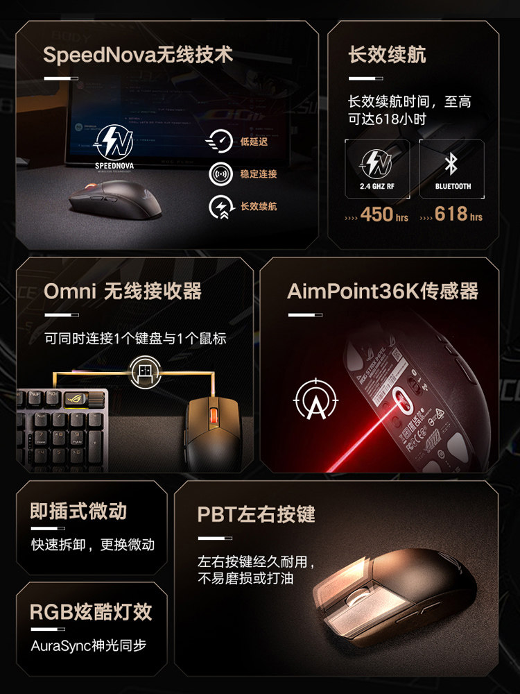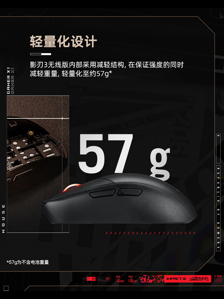 ROG影刃3无线36k传感器电竞游戏鼠标轻量化对称手型无畏契约华硕