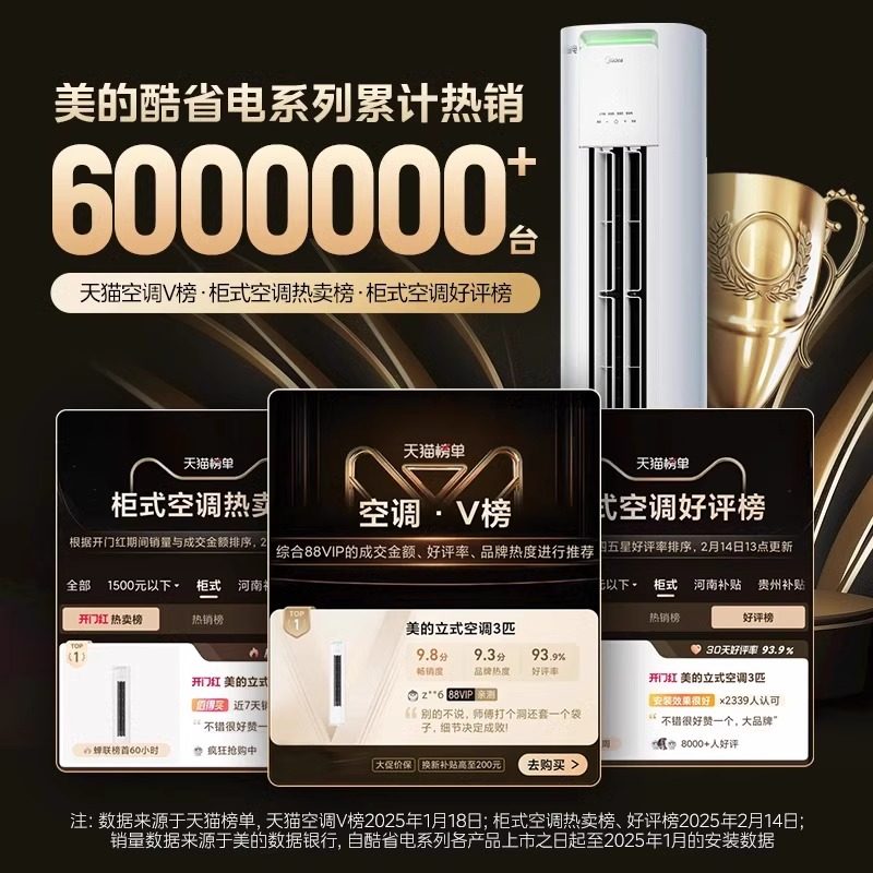 25年新品美的全面风空调酷省电正品一级家用3匹变频客厅立式柜机