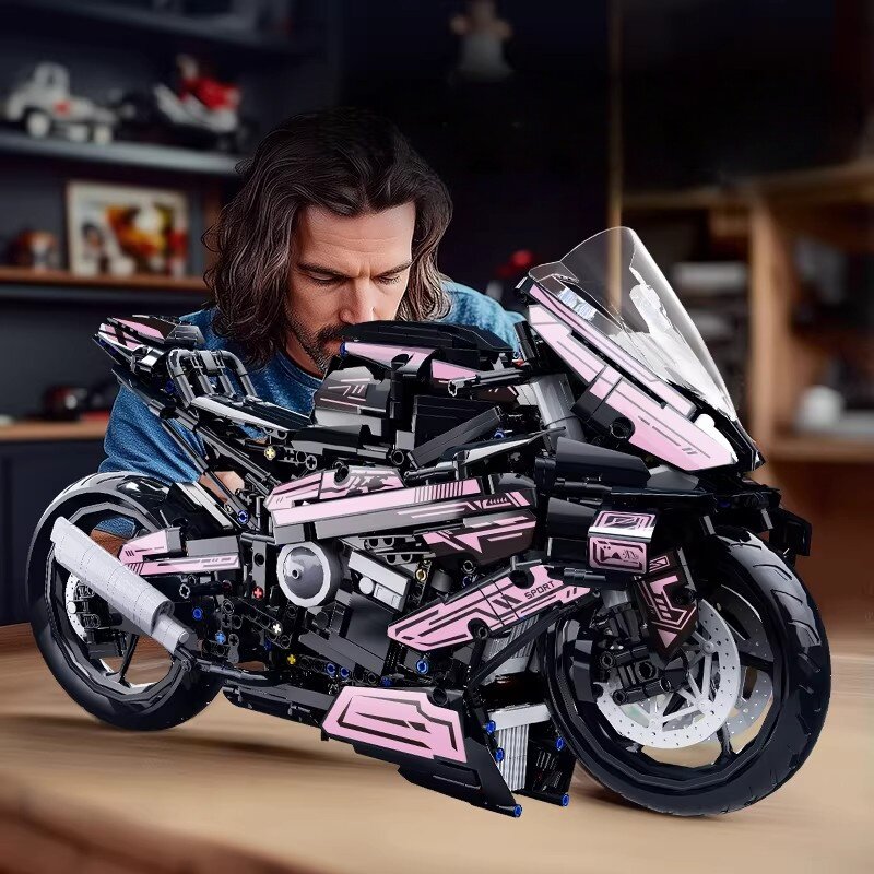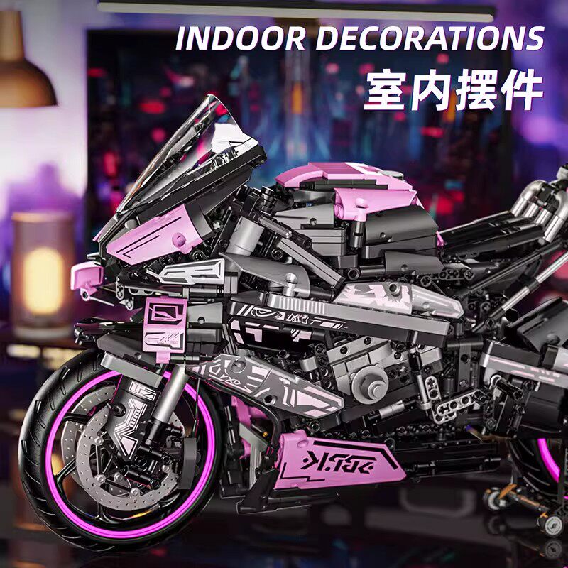 粉色赛博宝马M1000R摩托车积木机械组高难度男孩玩具新年礼物高级