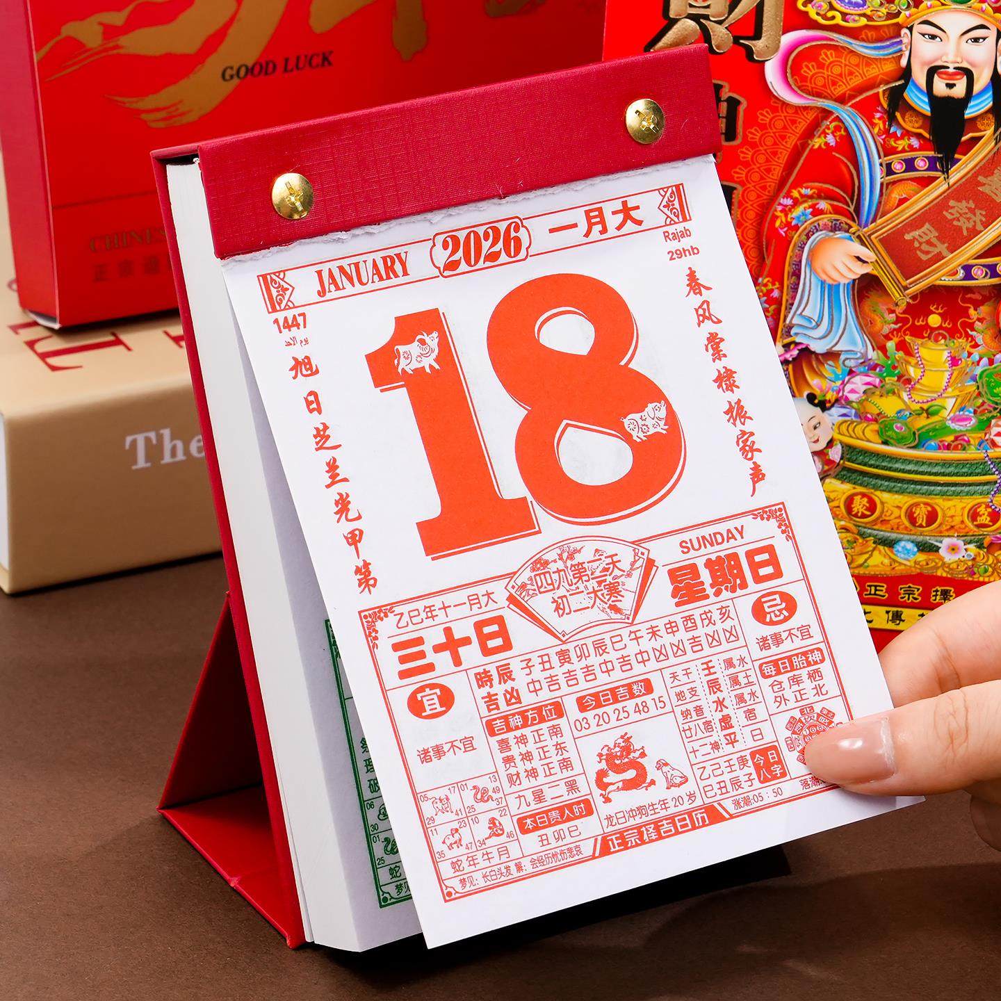 日历2026年新款瑞满堂台历式老黄历挂历桌面立式摆件2025黄历老式手撕万年历书倒计时挂式日厉年历老皇历香港