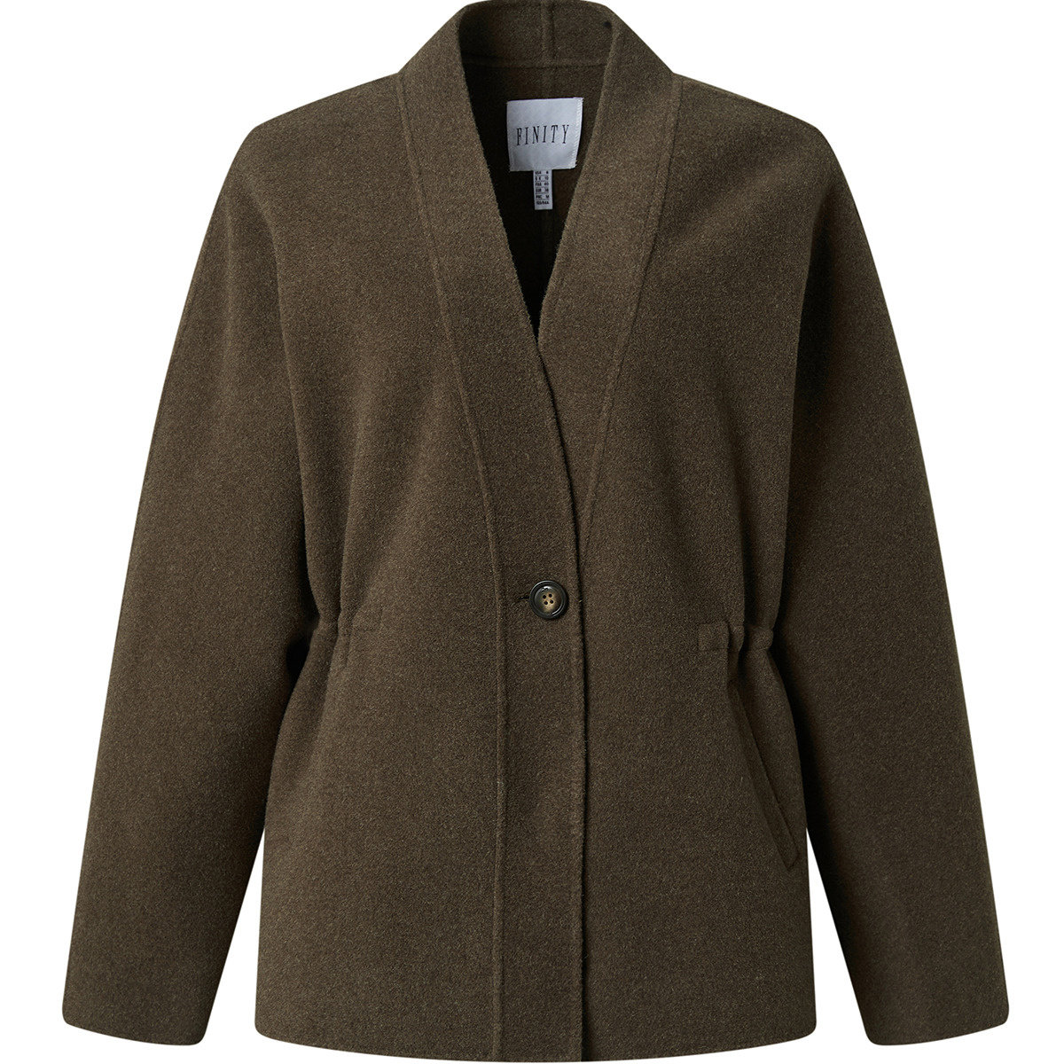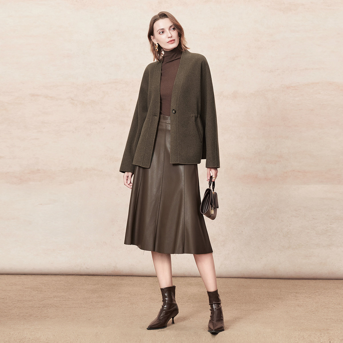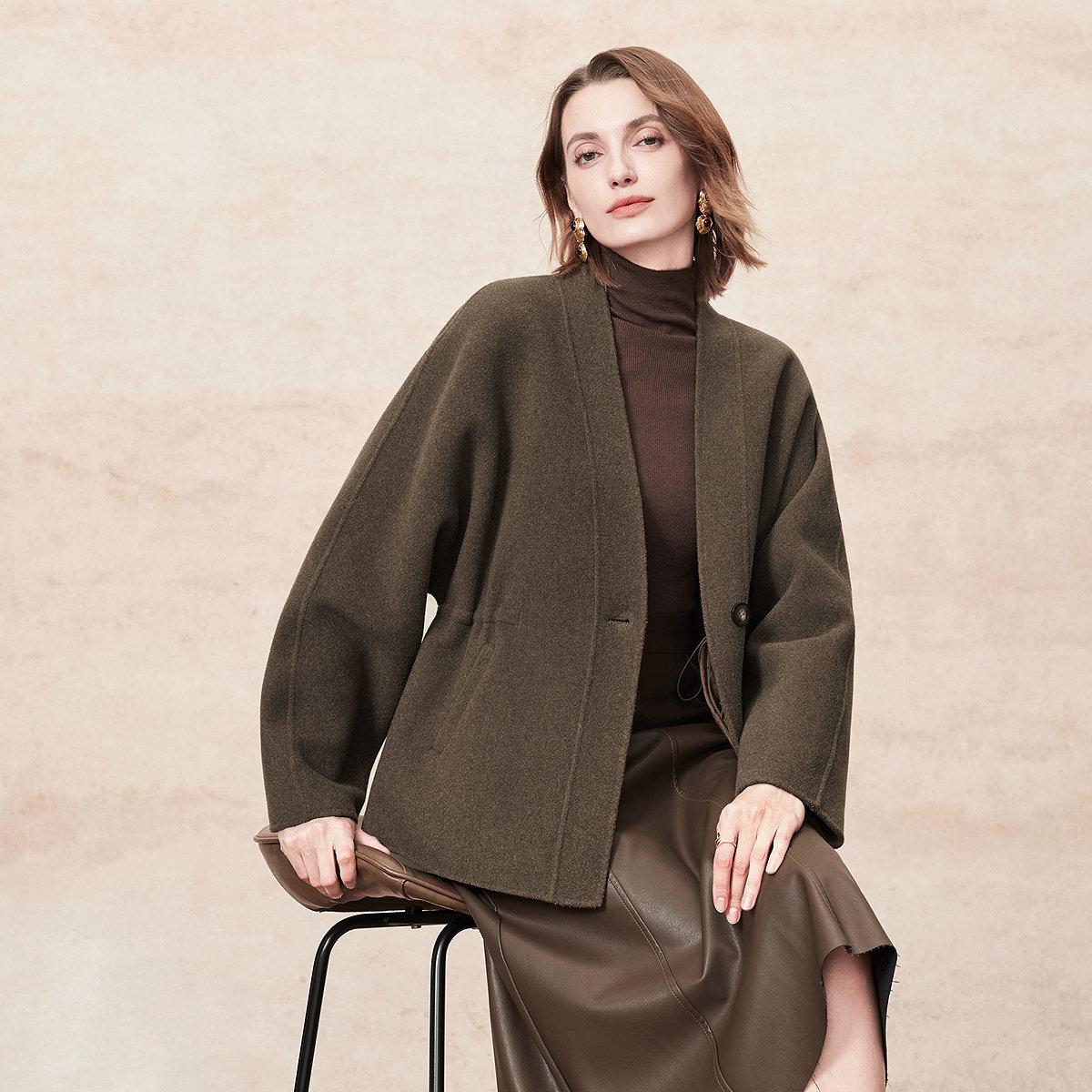 FINITY菲妮迪毛呢外套2025年冬季新款简约双面呢棕色短款大衣女士