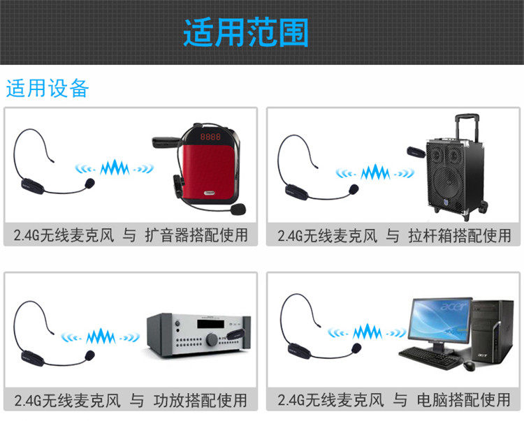 2.4G无线麦克风教师专用扩音器小蜜蜂耳麦头戴式话筒老师上课用的