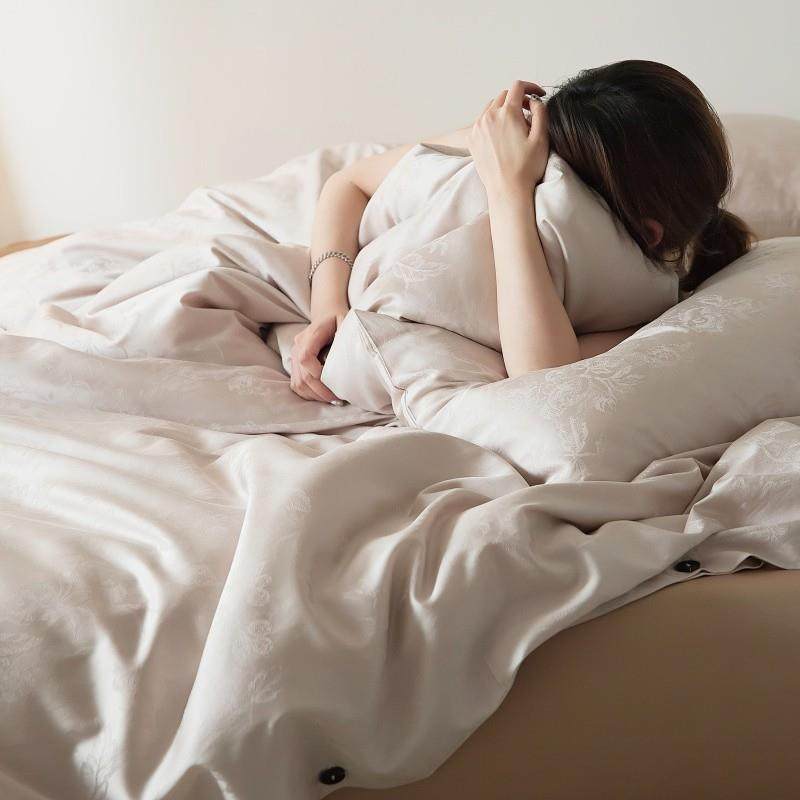 轻奢夏季凉感兰精天丝棉提花床上三四件套1.8米 冰丝床单被套床品