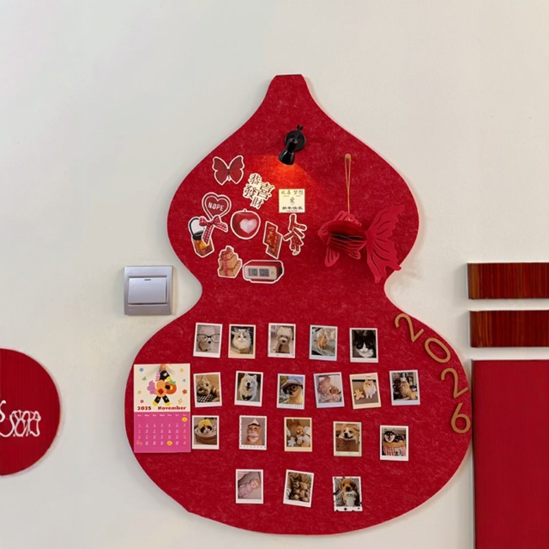 中国风毛毡墙贴葫芦毛毡板2026新款新年氛围装饰照片墙背景板相册拍立得相片展示墙客厅免打孔作品展示文化墙