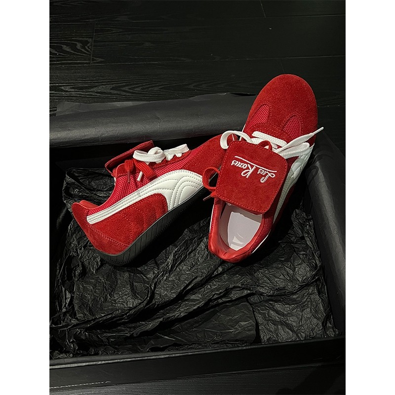 红色厚底德训鞋女款2025新款冬季百搭休闲轻便小个子增高加绒鞋子