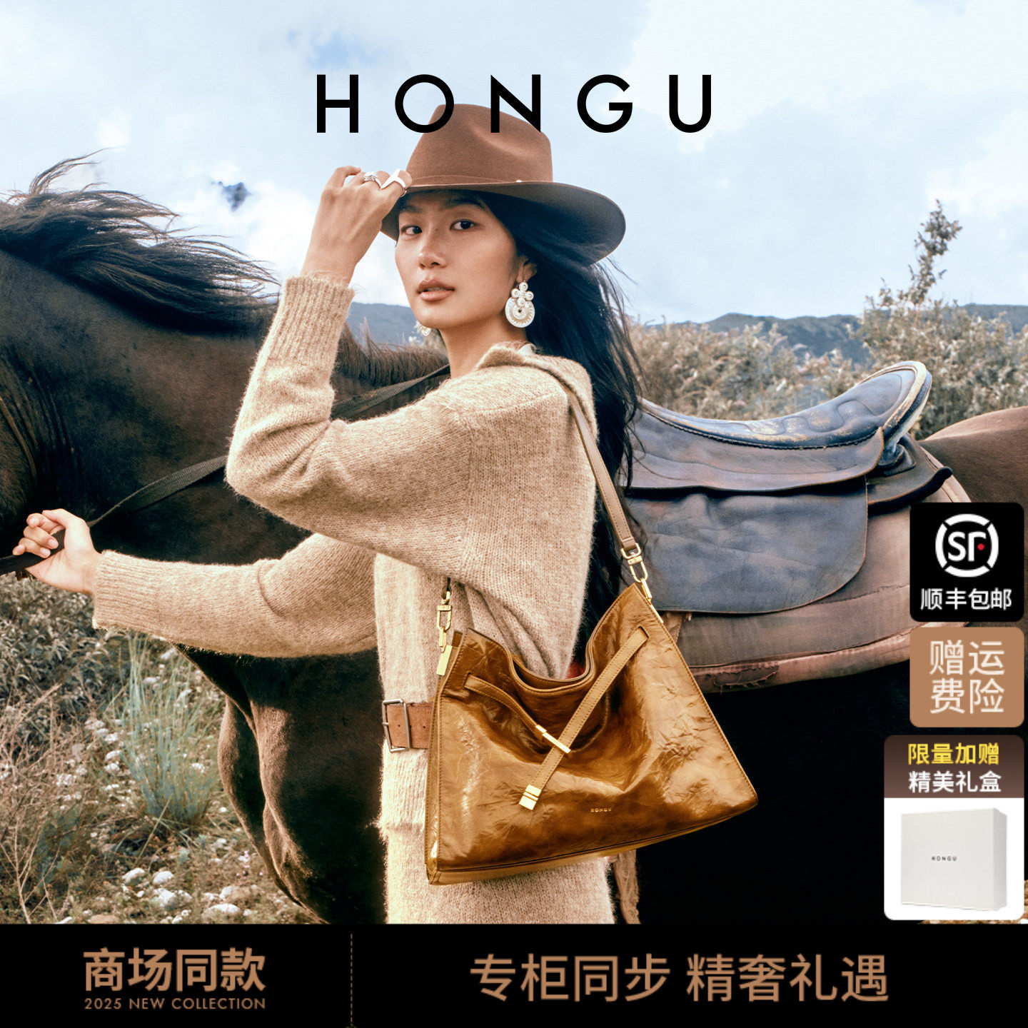 明星同款红谷新款双色抓花真皮单肩腋下包高级感大容量托特包女包