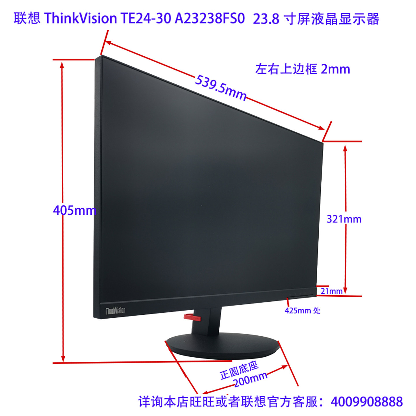 全新Lenovo联想TE24-30 23.8寸IPS屏液晶显示器A23238FS0窄边框