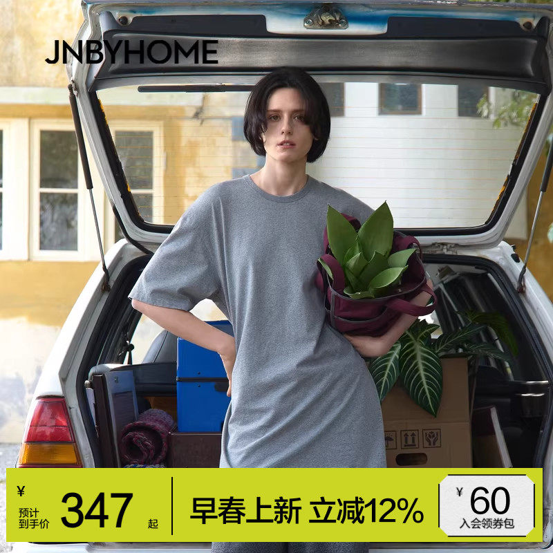 JNBYHOME江南布衣26新品夏季女圆领短袖家居睡裙纯色睡衣休闲简约