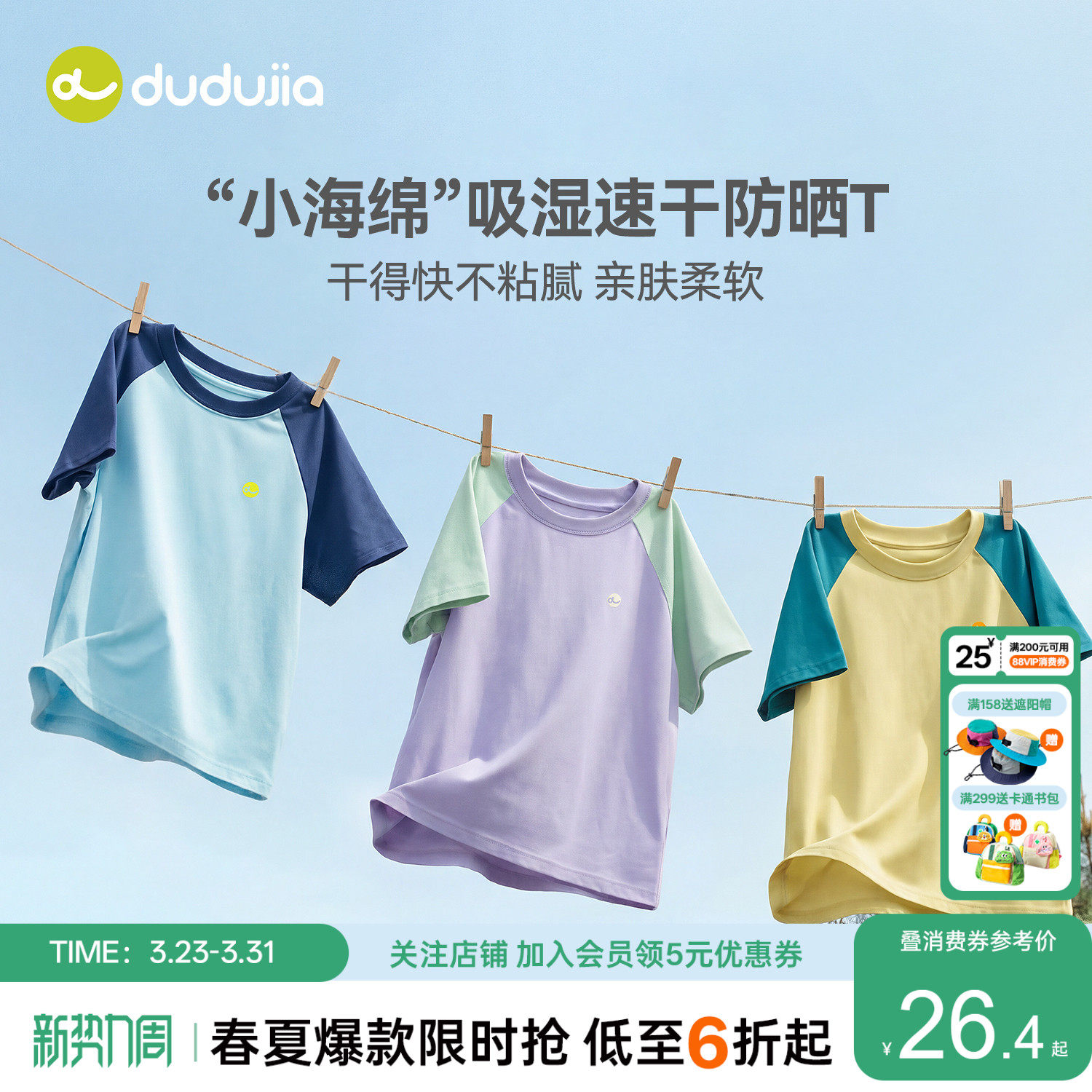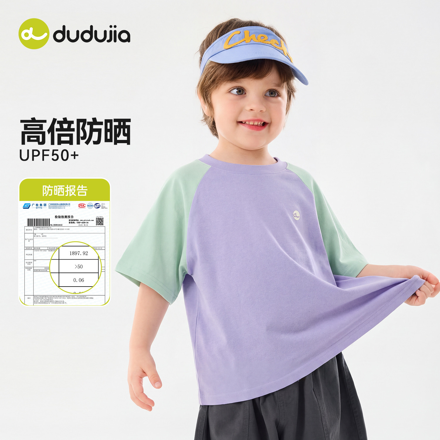 【UPF50+】嘟嘟家儿童T恤夏季防晒上衣男童速干短袖女童休闲夏装