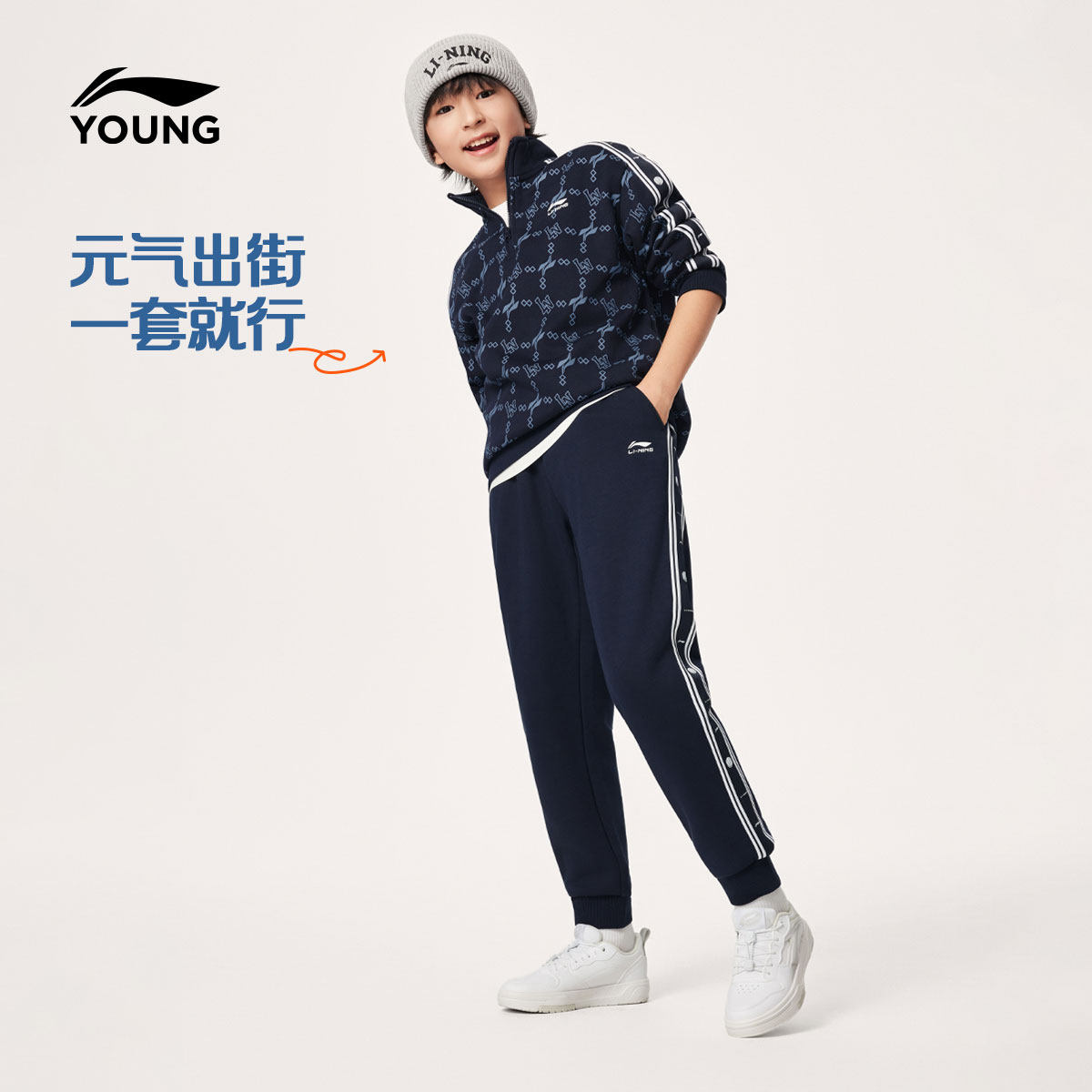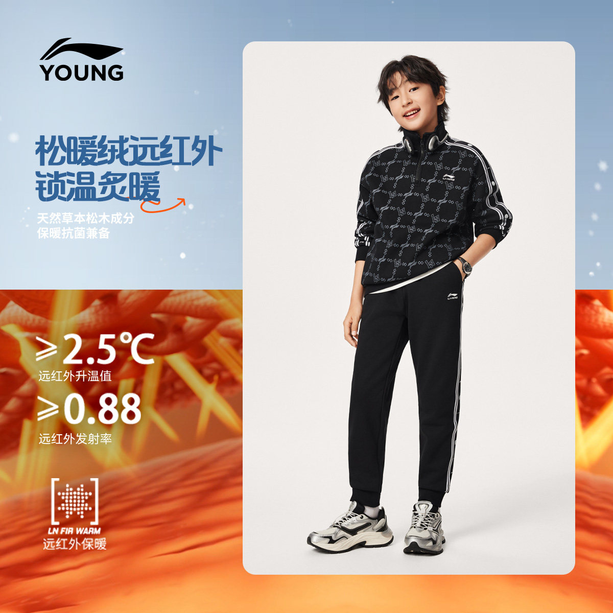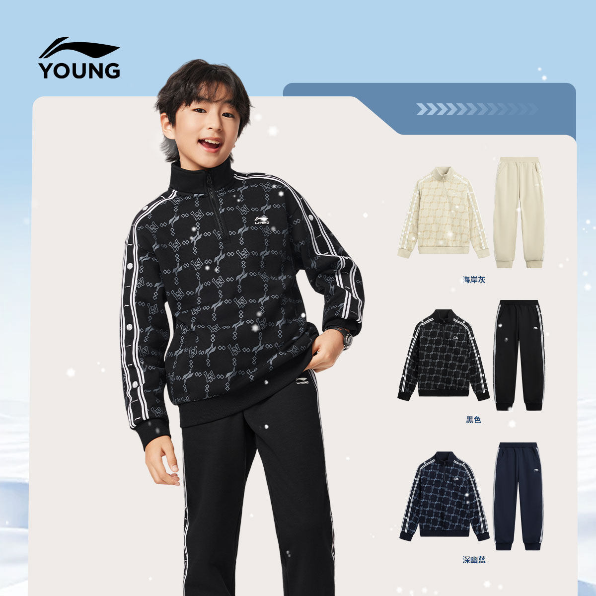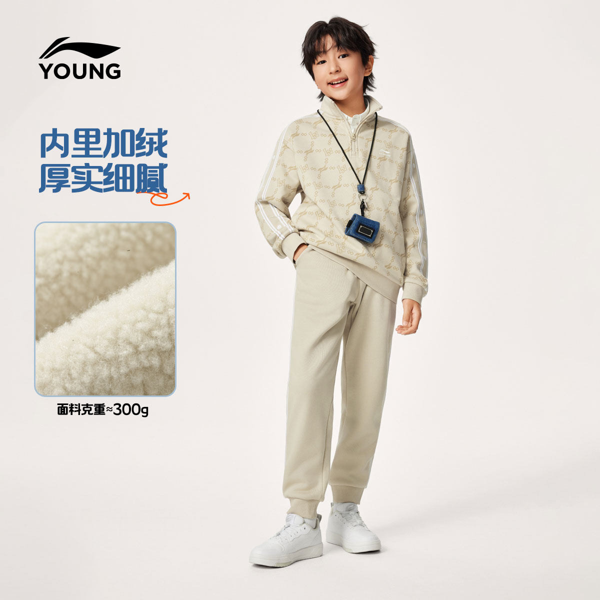 李宁童装套装男大童青少年运动生活系列冬季加绒保暖休闲针织童装