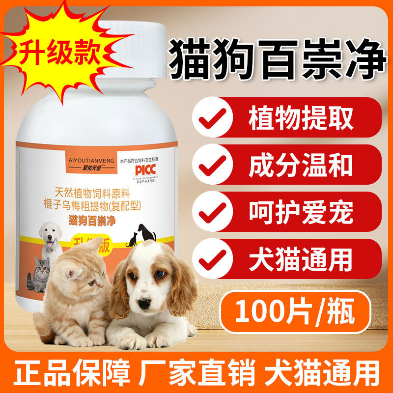 正品猫狗百崇净鸡肉味宠物驱虫天然植物饲料原料猫咪狗通用驱虫片