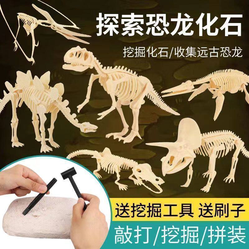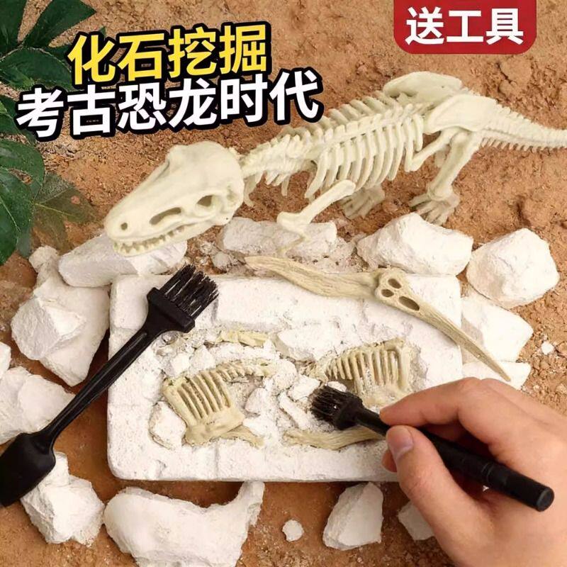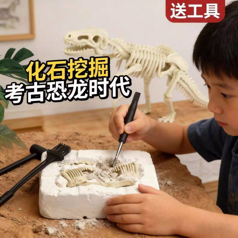 考古挖掘男孩女孩敲砸挖宝藏寻宝石恐龙化石儿童盲盒摆摊商场玩具