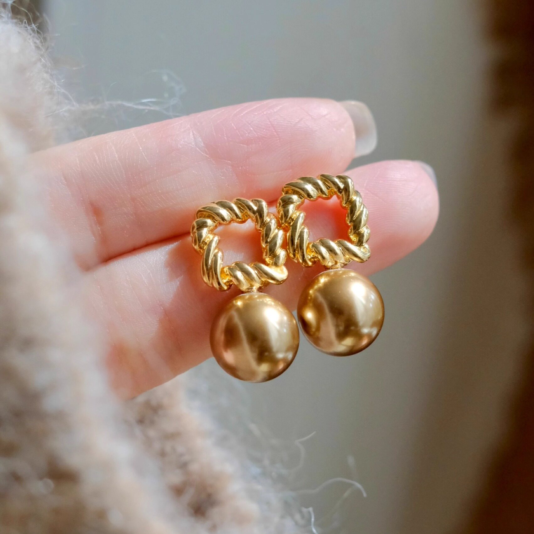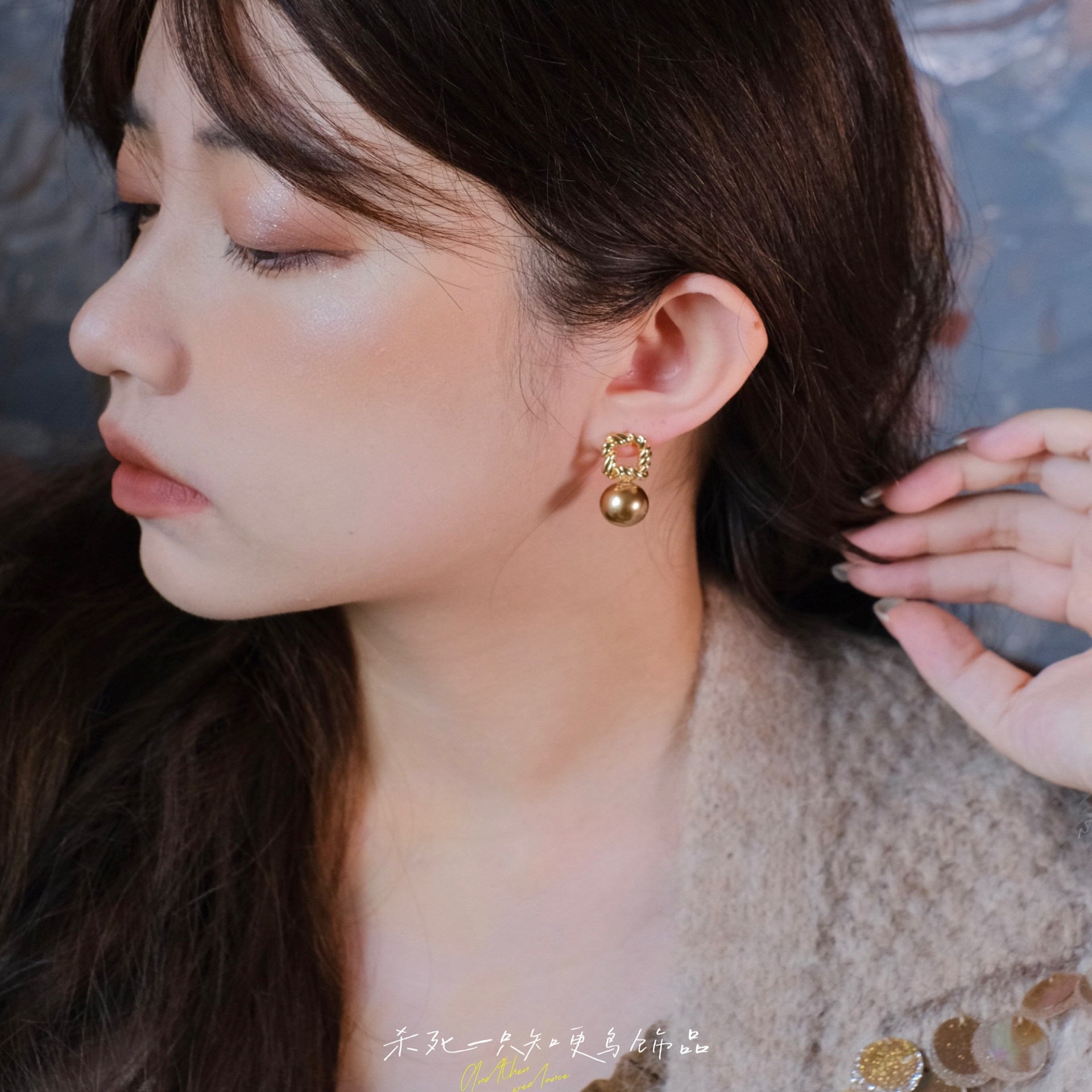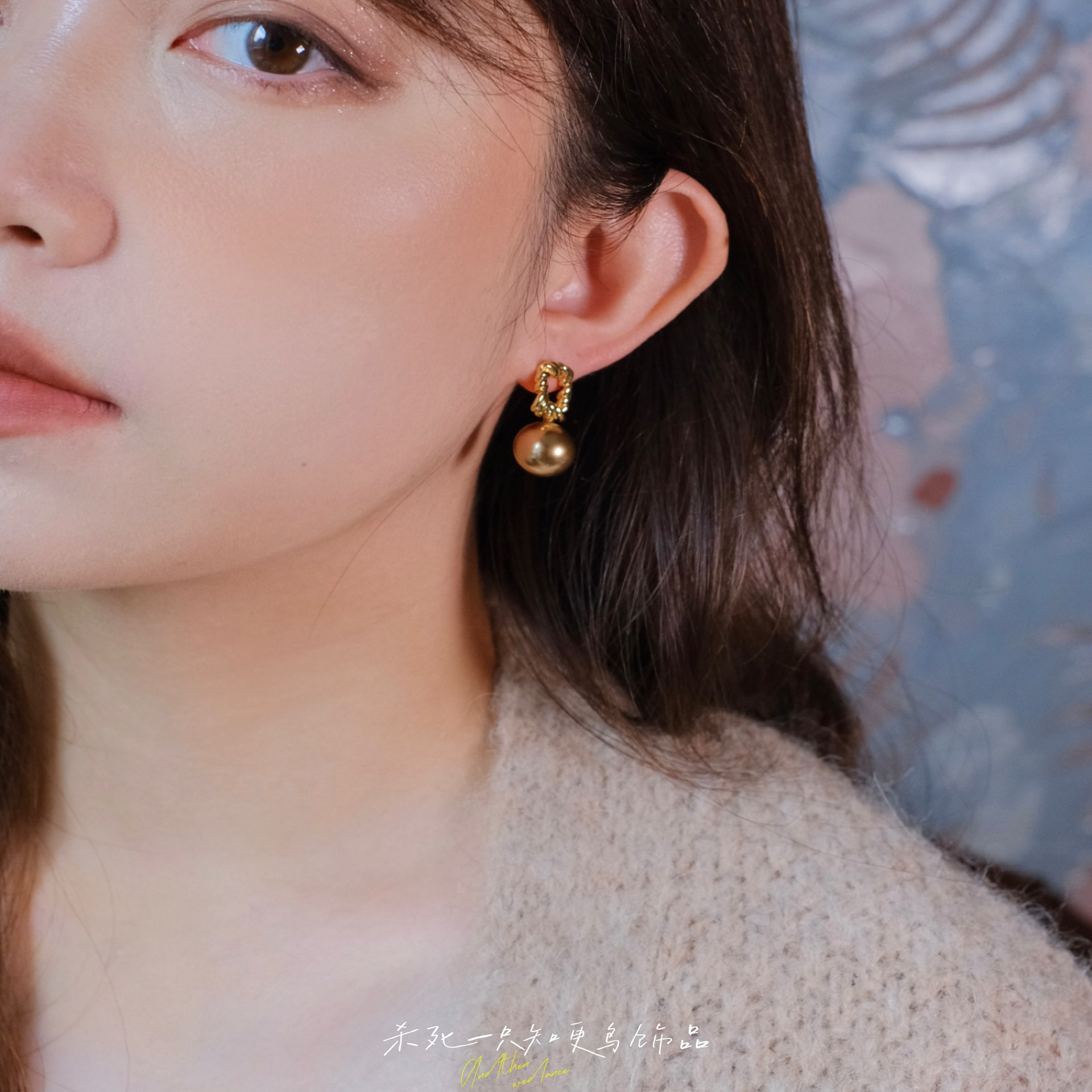 《金秋栗子》法式秋冬简约时髦几何方向摩卡金棕珍珠耳钉耳环耳夹