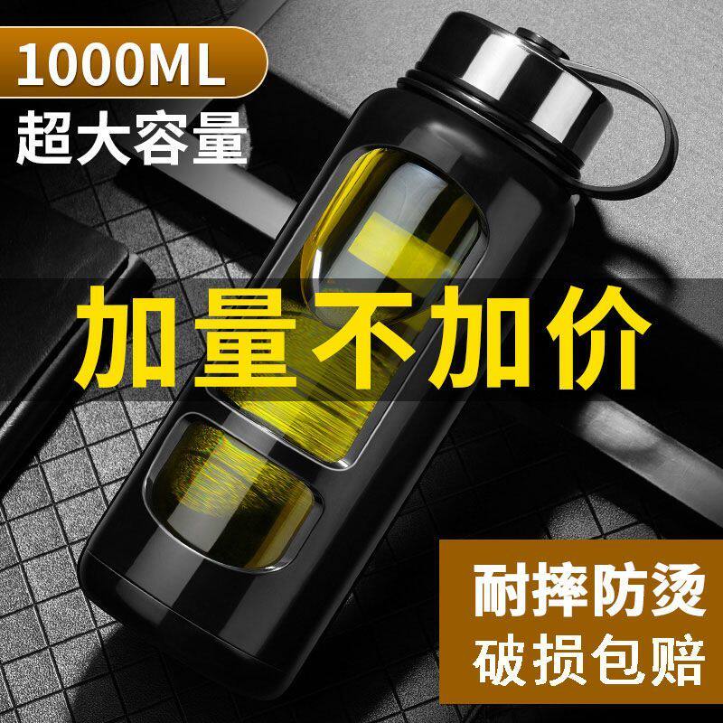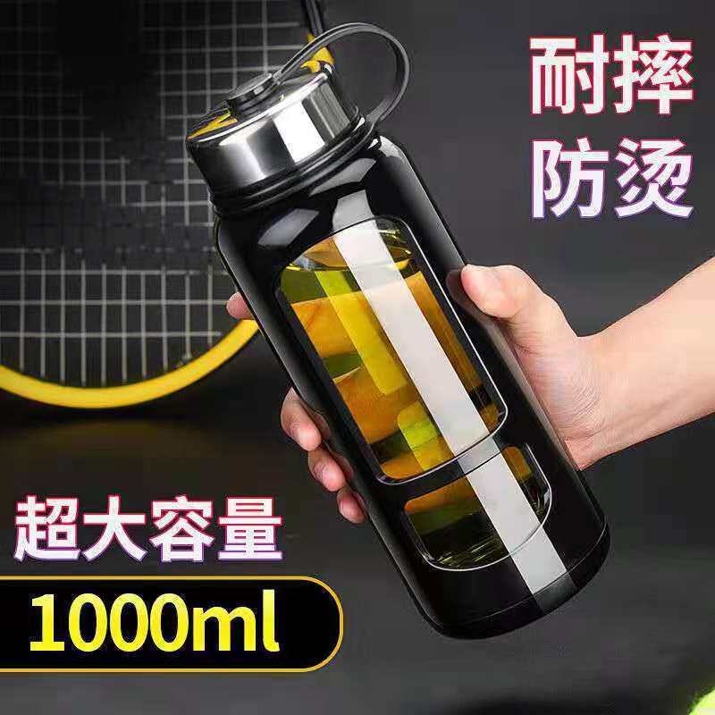 钢盖玻璃杯高硼硅防摔隔热超大容量便携水杯带盖过滤泡茶食品级