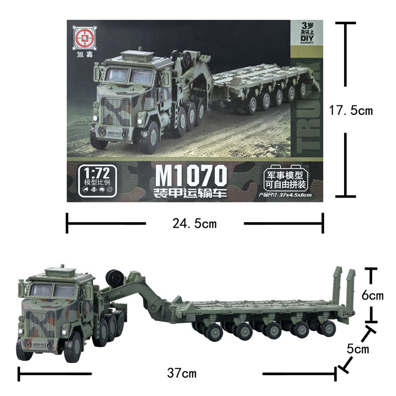 旭嘉新款美国M1070装甲运输车1/72军事拼装积木模型男孩益智玩具