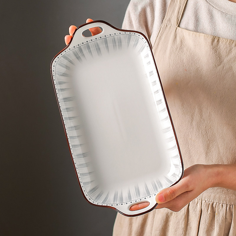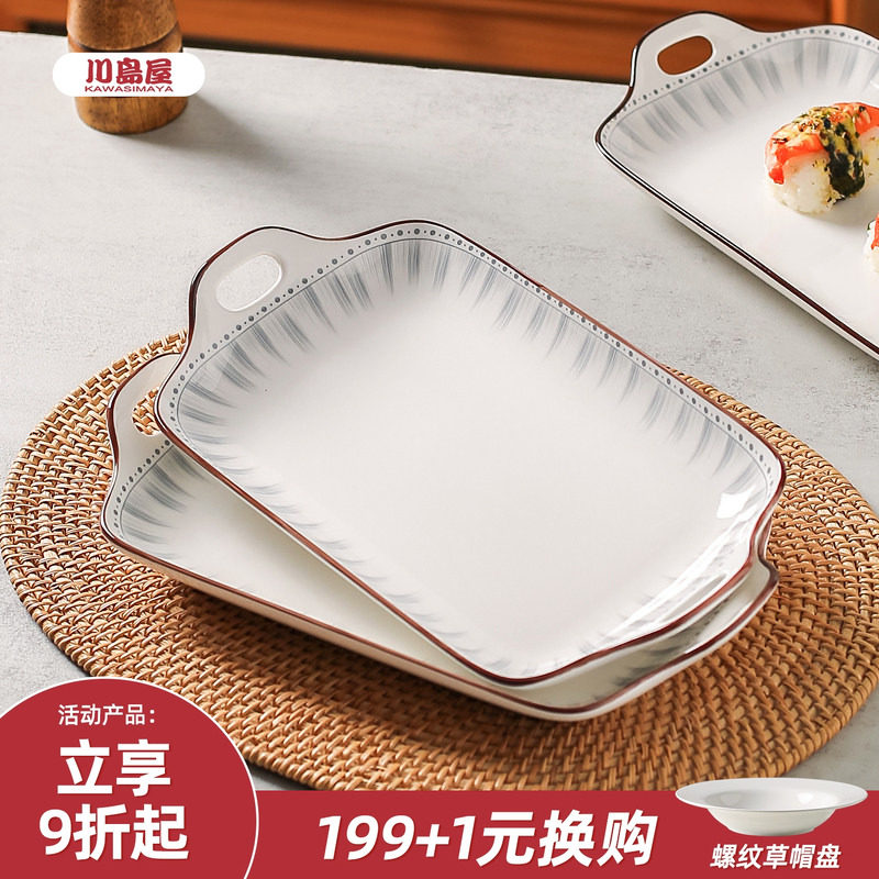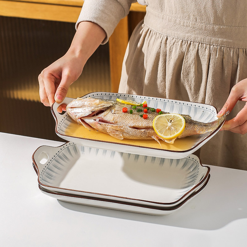 川岛屋双耳鱼盘家用2025新款蒸鱼盘子高级感陶瓷长方形装鱼碟菜盘