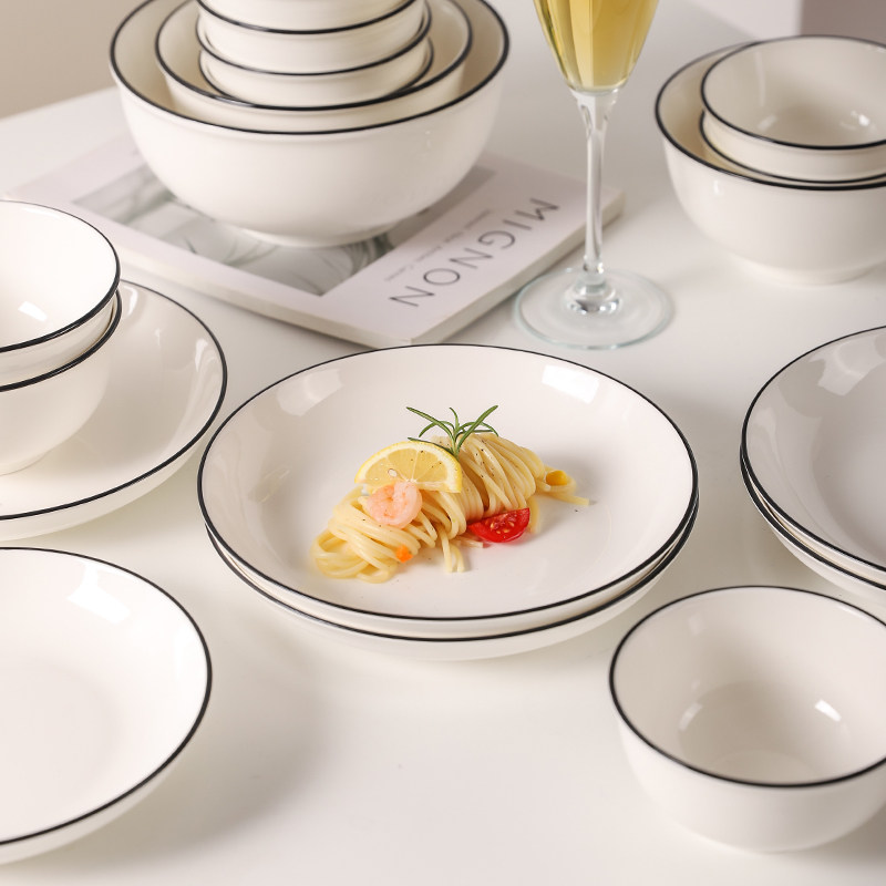 陶瓷家用盘碗5个菜盘1汤碗圆盘子大汤碗水果盘饭盘碗碟子可微波炉