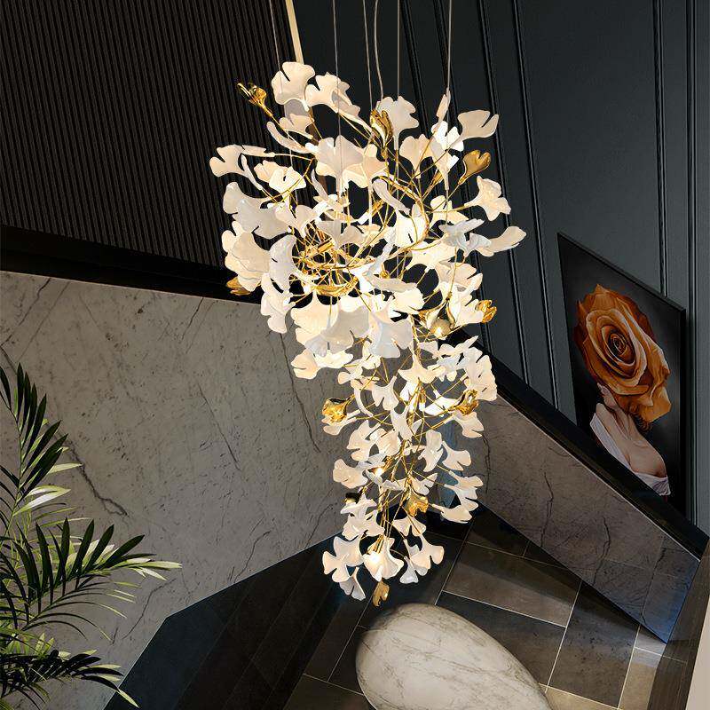 银杏叶楼梯间长吊灯大气别墅复式楼loft酒店大堂创意艺术灯具楼道