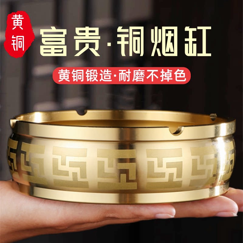 纯黄铜烟灰缸家用客厅办公室高端大气高档摆件仿古工艺品金属全铜