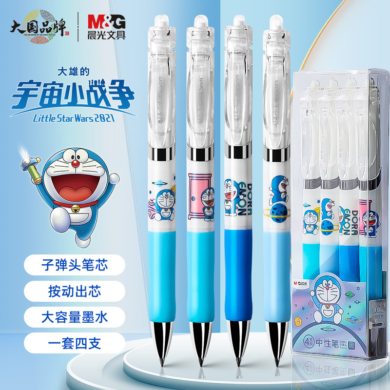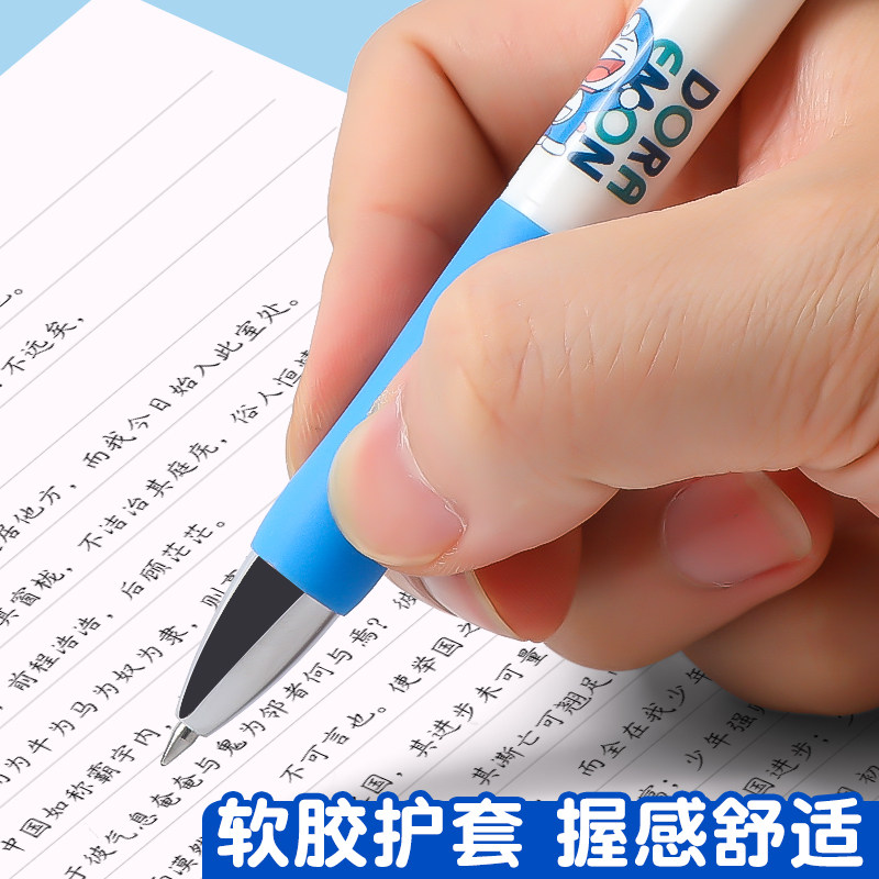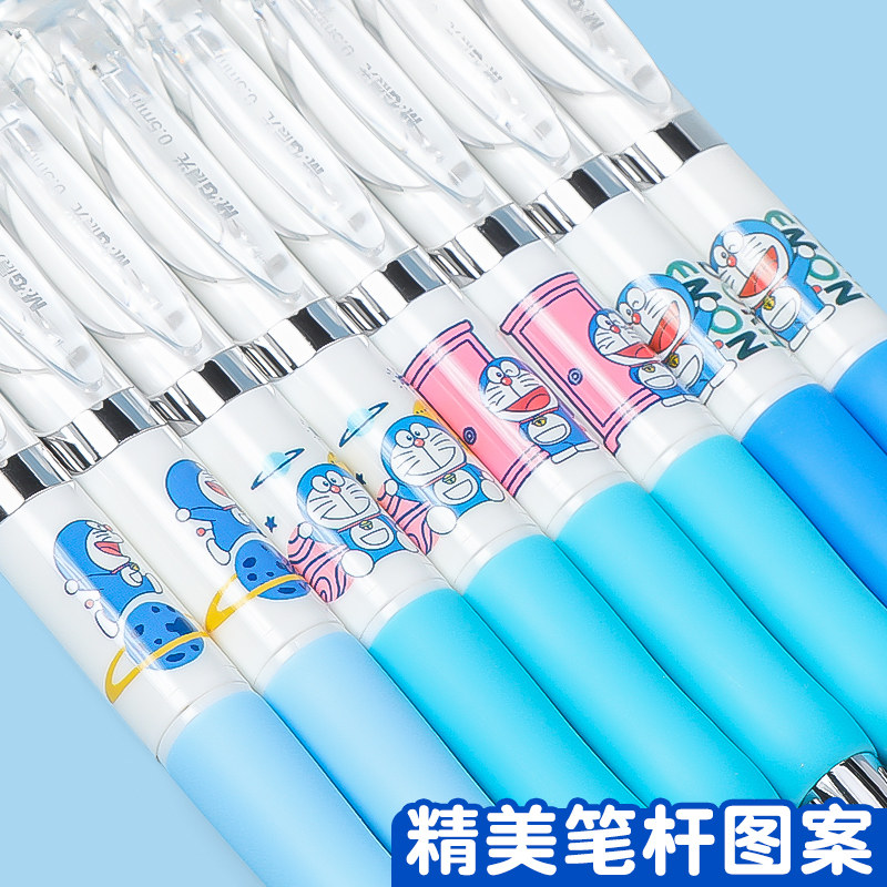 晨光哆啦A梦联名限定中性笔按动水笔软握护套高颜值ins日系可爱萌学生考试专用按压式签字笔黑色0.5直液式