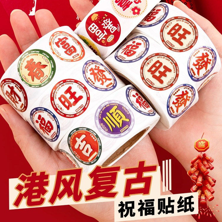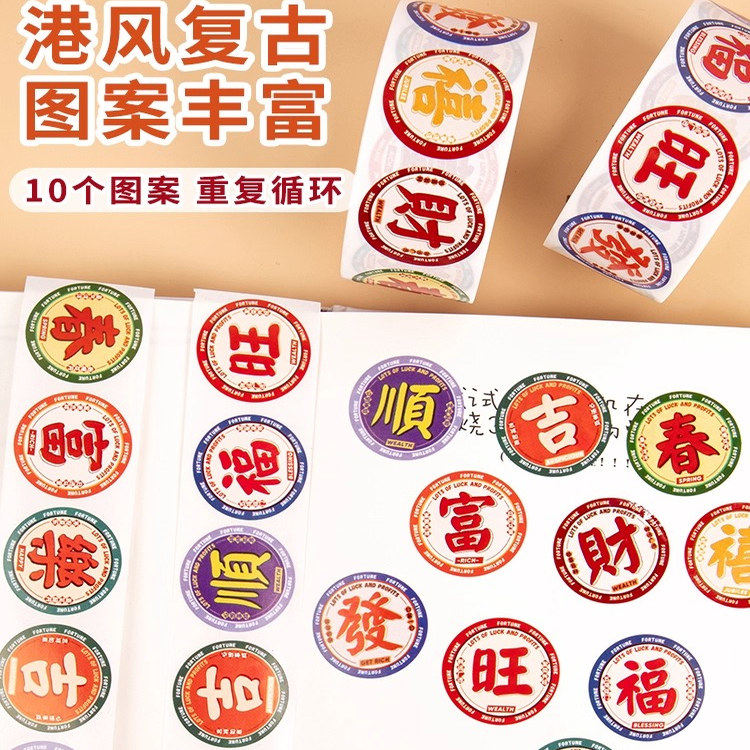 复古中国港风福字标签贴纸迷你小号圆形封口贴春节装饰红包素材贴