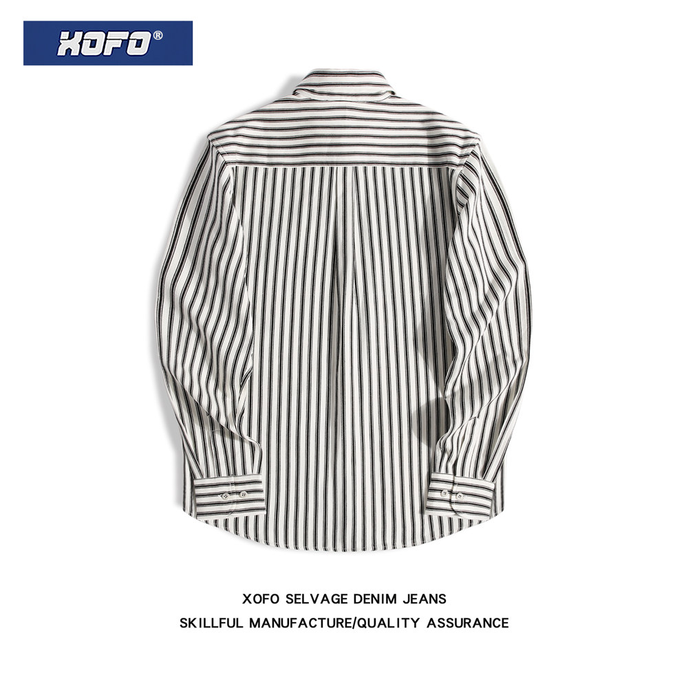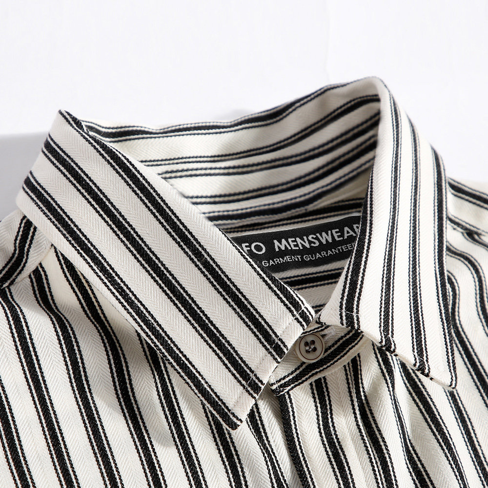 【定织黑白条纹】秋季港风日系衬衫男内搭长袖休闲男士衬衣外套