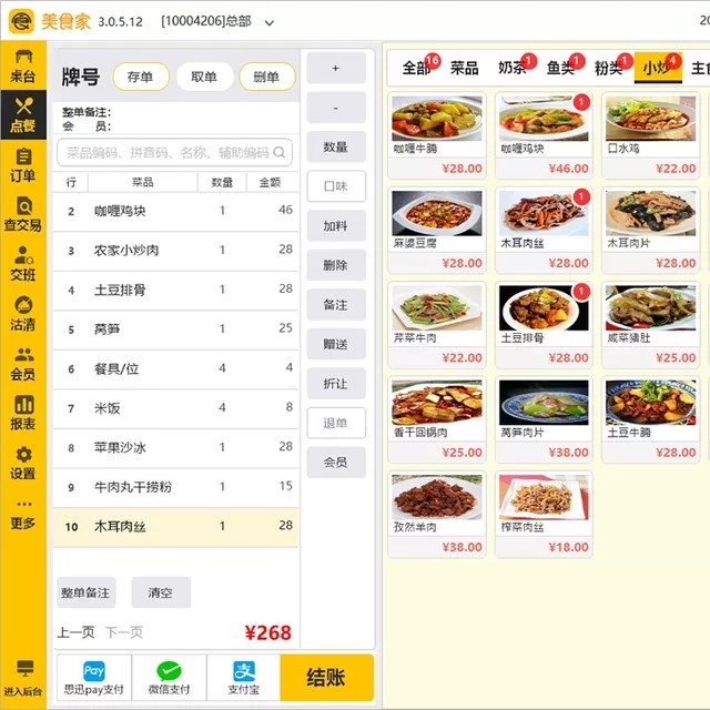 思迅天店美食家3云餐饮管理系统奶茶小吃西餐甜品店收银系统软件