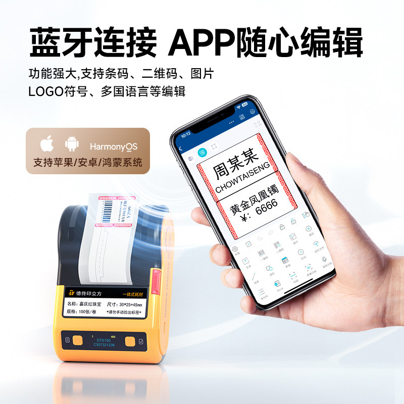 德佟DT5150热转印珠宝标签打印机首饰饰品标签吊牌手持小型蓝牙眼镜手表手镯玉器翡翠黄金白银打价格标签机