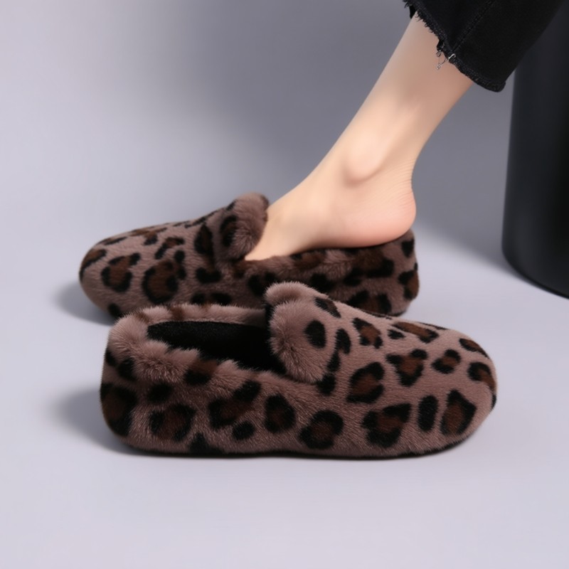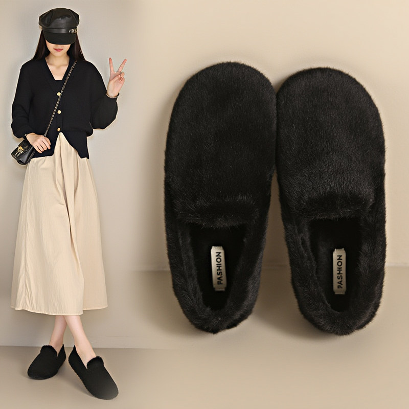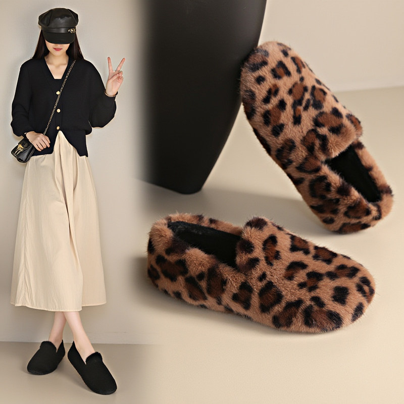 【水貂绒】豹纹毛毛鞋女冬季外穿高级感加绒保暖一脚蹬软底豆豆鞋