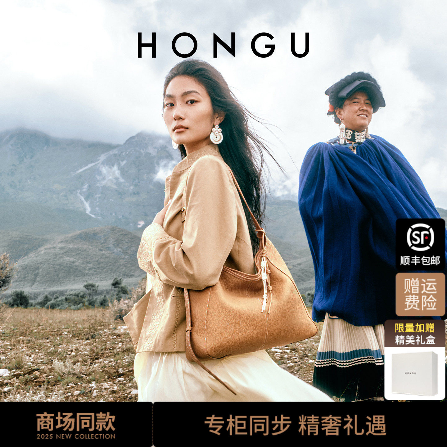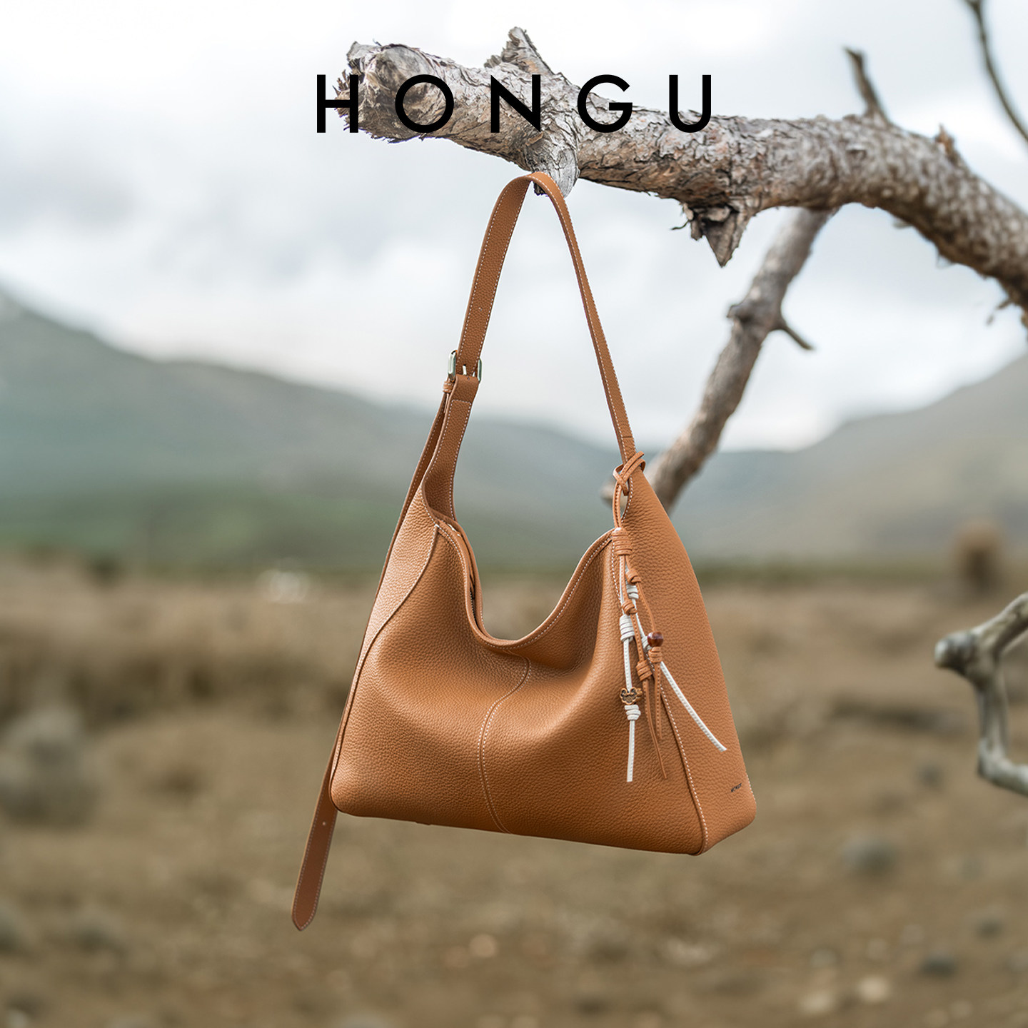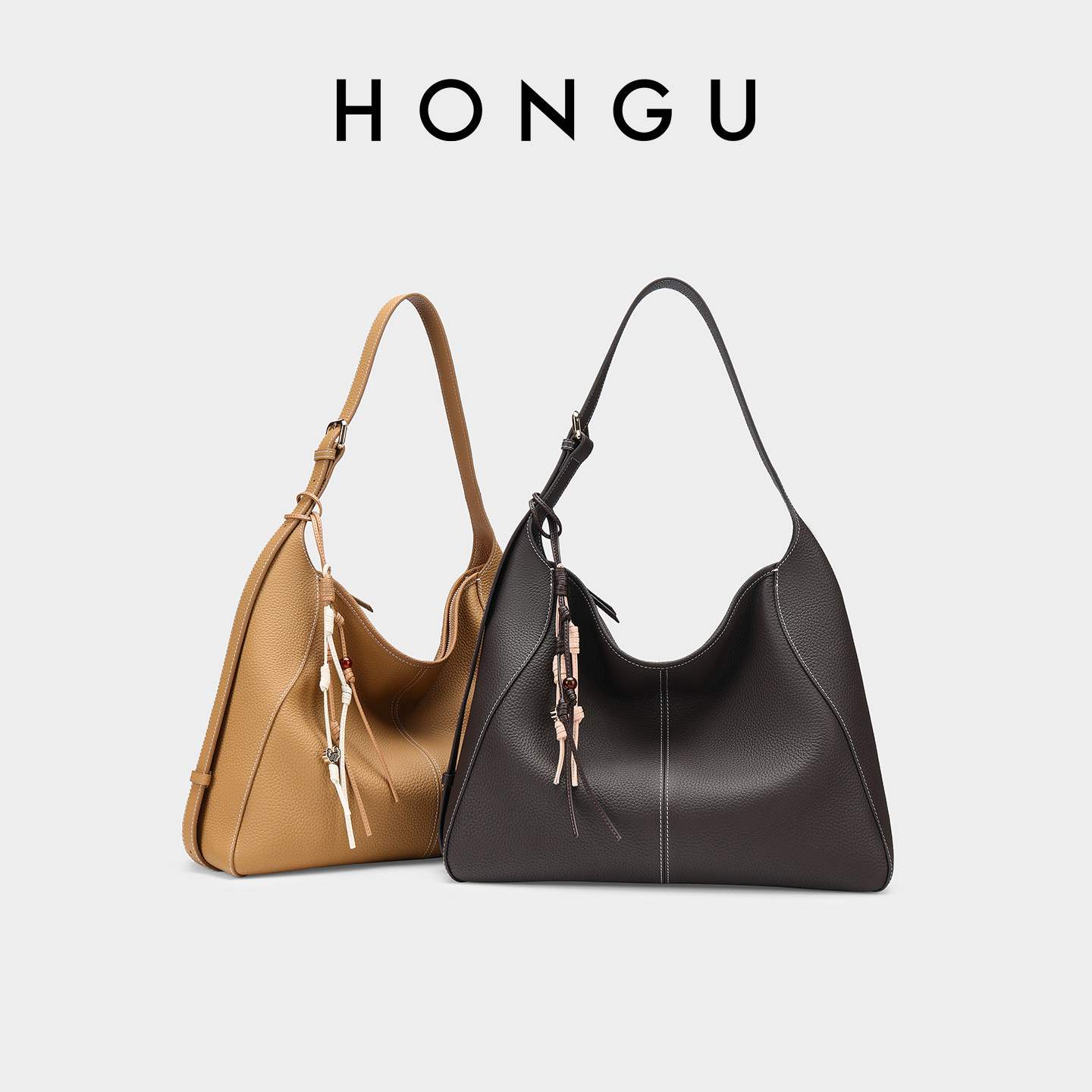 红谷包包2025新款真皮单肩腋下包复古通勤高级感hobo包牛皮女士包
