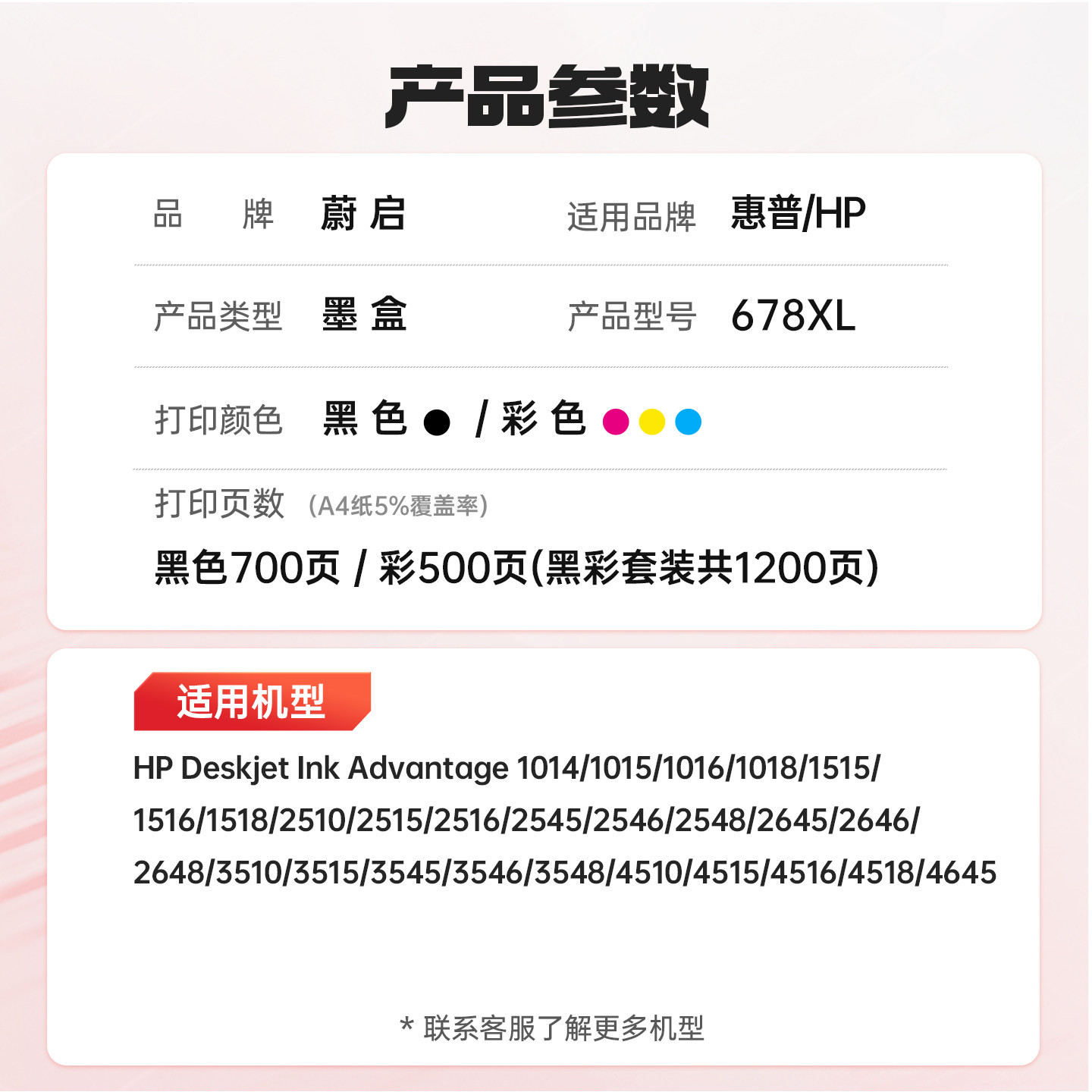 蔚启678墨盒适用惠普HP4518 3548 2548 4648 2648黑彩色1018 1518 2515 3515喷墨打印机墨水678可加墨Deskjet
