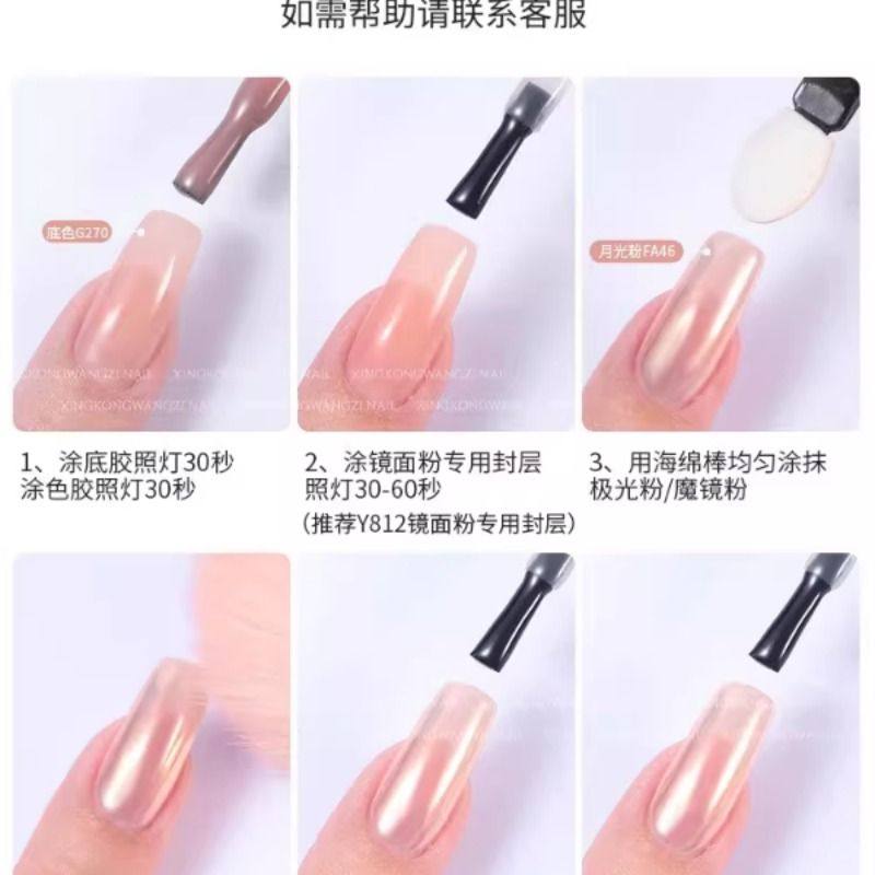 网红天空之境美甲极光粉海莉同款珍珠白月光香槟金银色镜面魔镜粉
